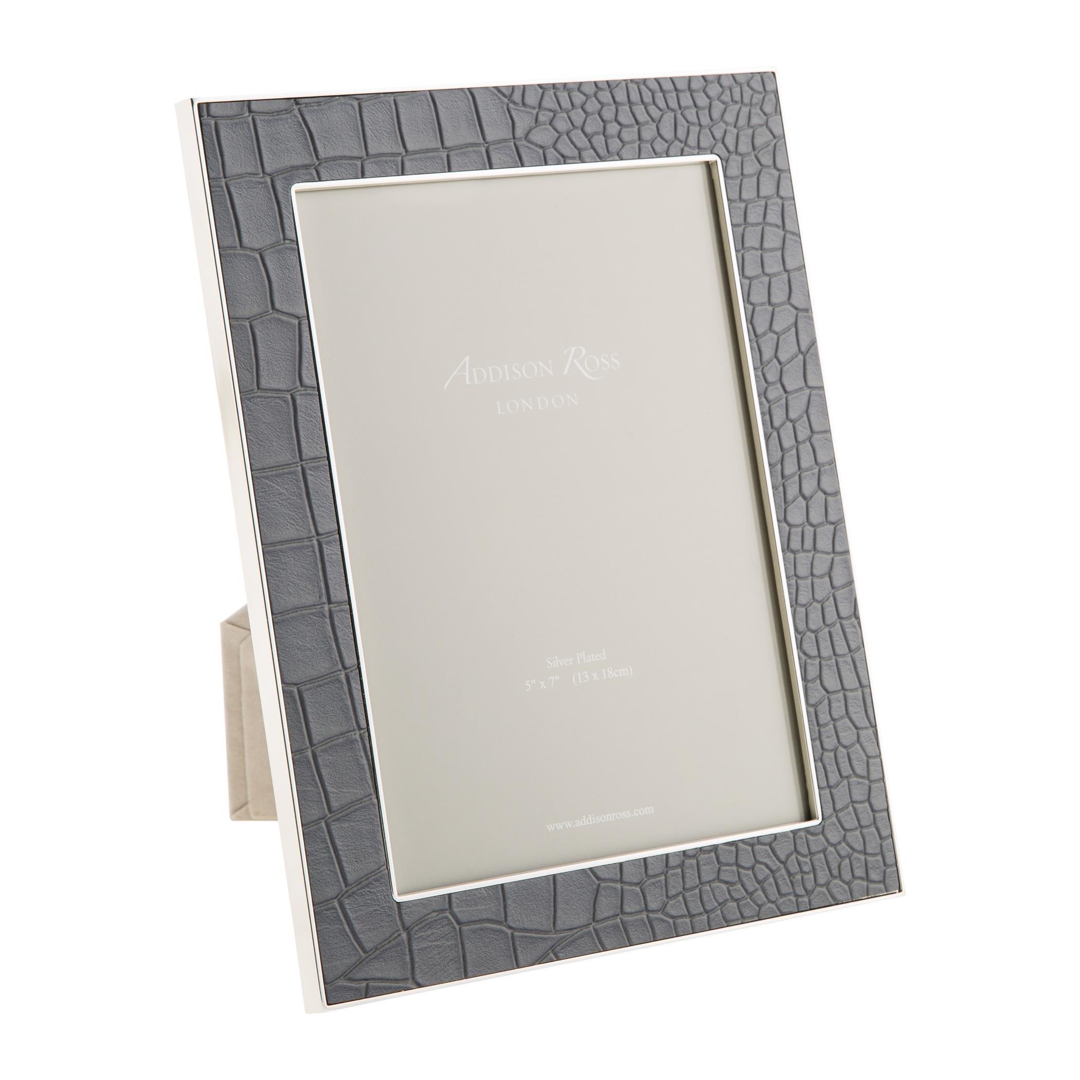 Inject luxury into an interior with this Faux Croc photo frame from Addison Ross. In a dove grey tone and a choice of sizes, this fashionable frame is made from a faux crocodile skin, giving a unique texture with silver plated detailing. Perfect for displaying a cherished memory or favourite photograph, layer with further frames or decorative pieces available separately to complete the look.