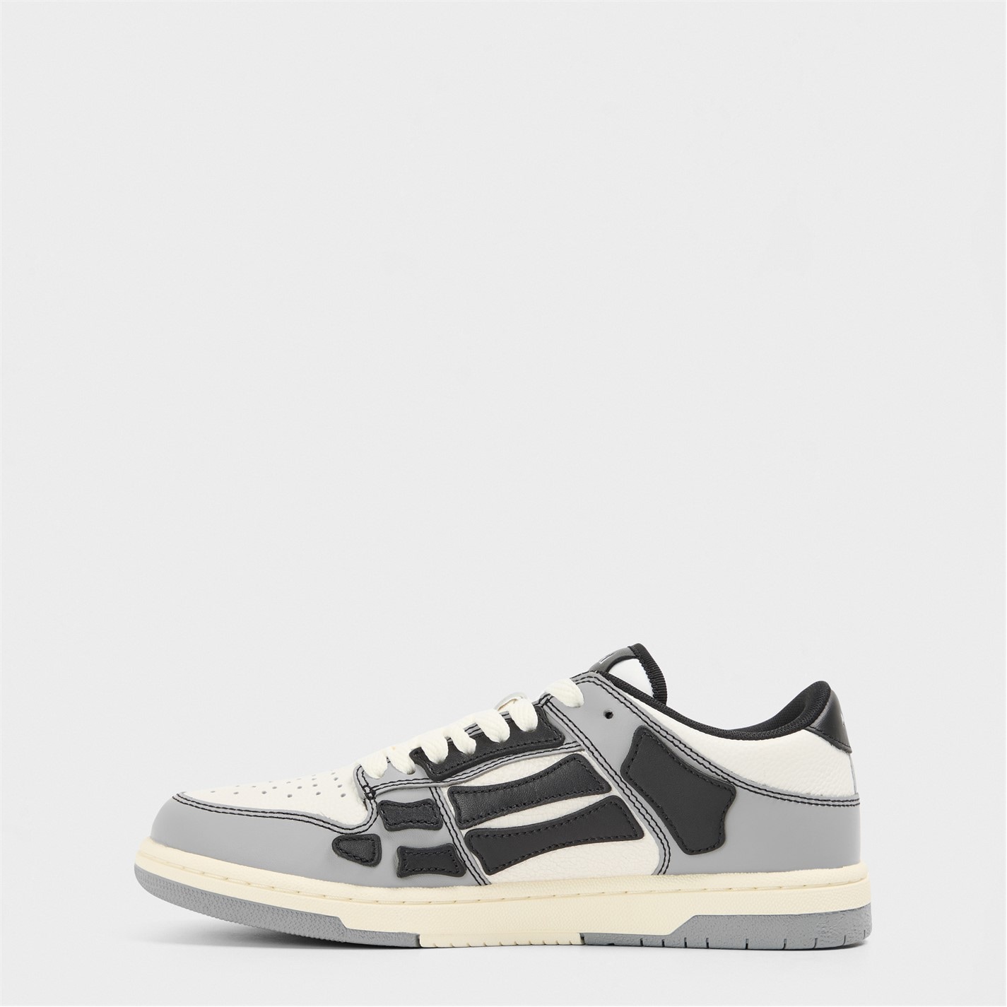 Upgrade your casual footwear collection with the Amiri Skeleton Top Low Trainers. Expertly crafted with a premium leather upper and durable synthetic sole, they feature a low-profile ankle collar, lace-up closure, and cushioned insole for all-day comfort. The two-tone panel design, skeleton bone detailing, and perforations add a bold, stylish touch—perfect for laid-back city strolls or warm summer walks.