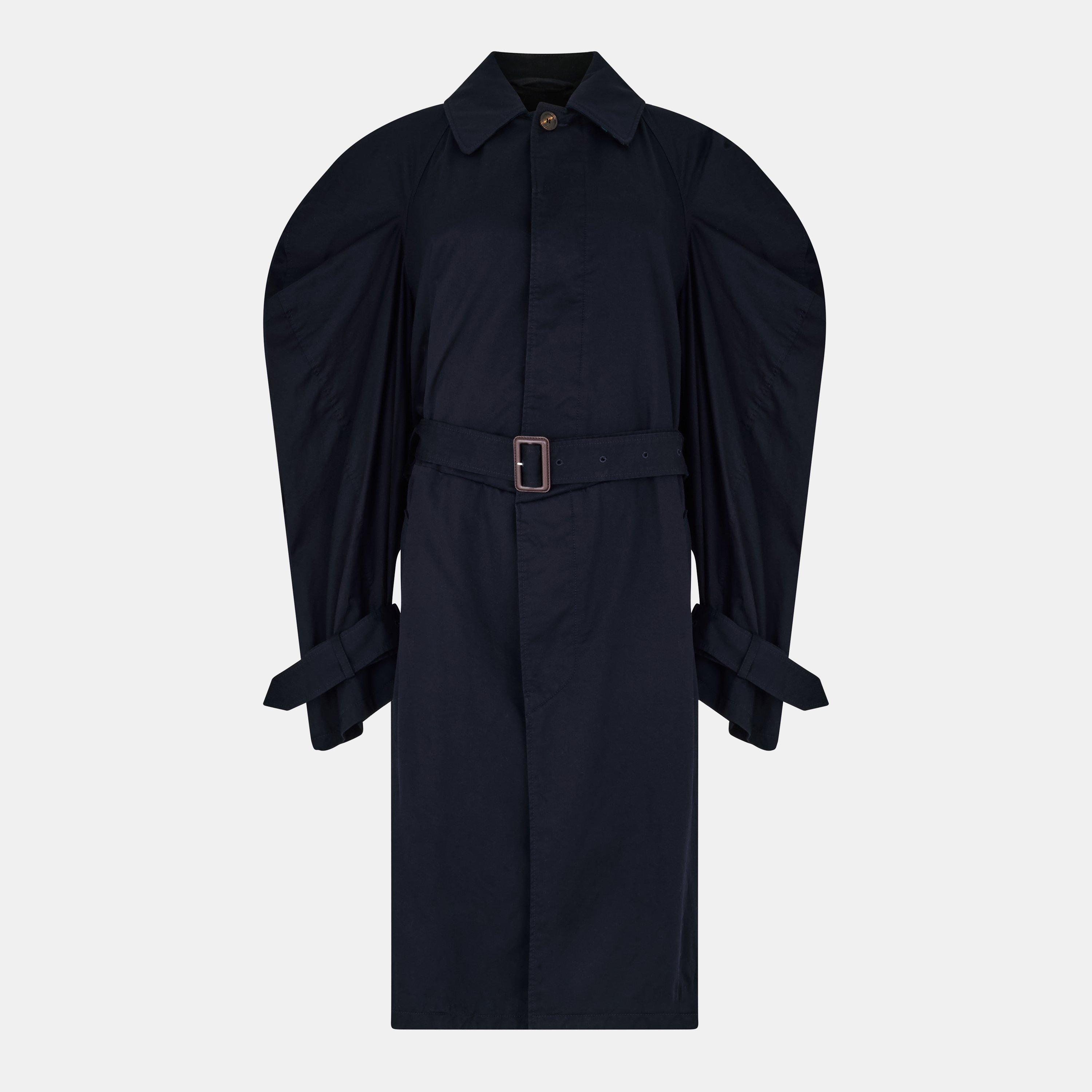 Balenciaga's Women's Oversized Water-Resistant Trench Coat reimagines the classic shape with bold, exaggerated proportions. The structured design maintains the brand's designer style while the water-resistant finish ensures functionality for unpredictable weather.