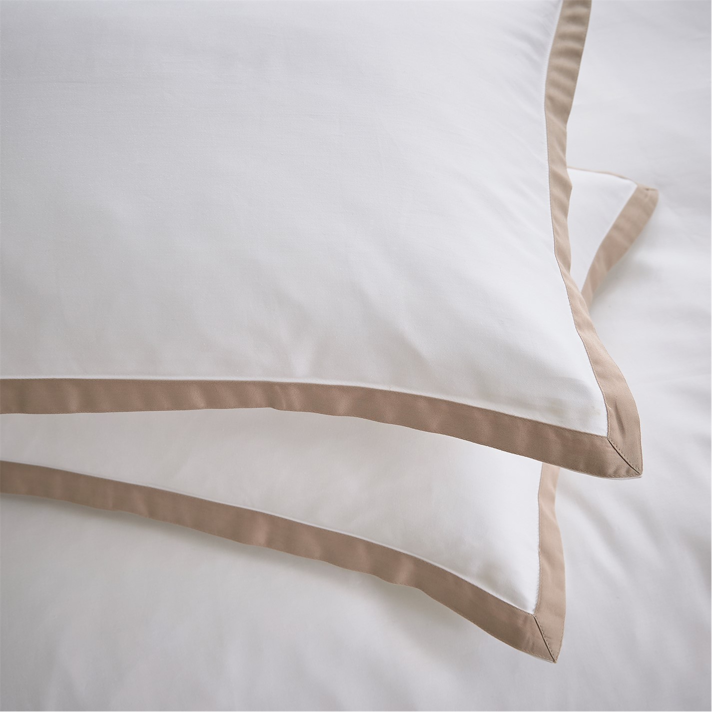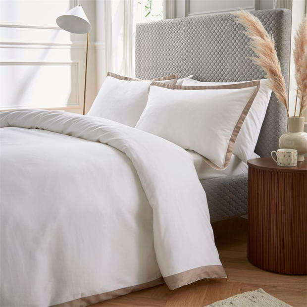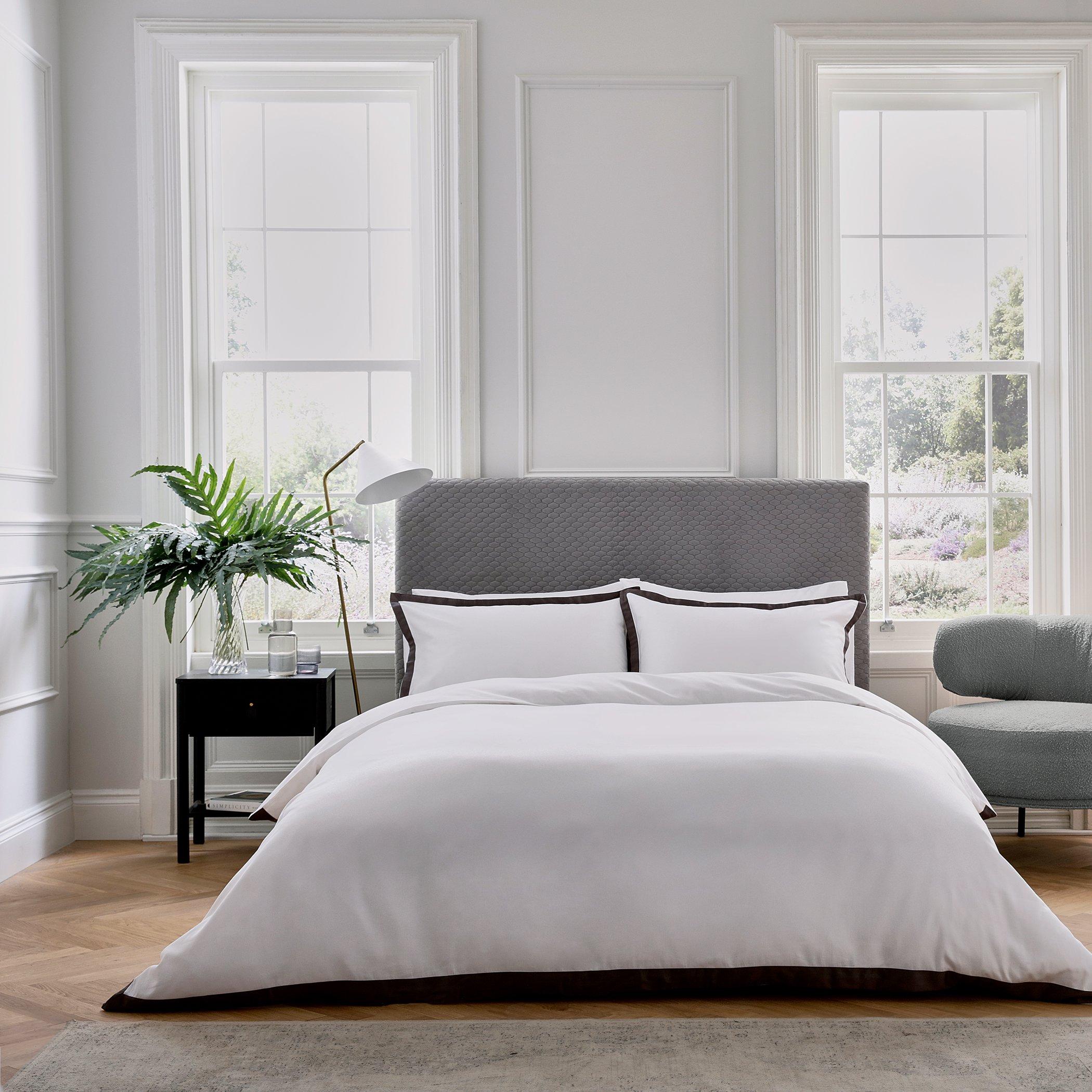 A beautifully sophisticated bedding design in pure white with a contrasting inlay around three sides. The coordinating oxford pillowcase is trimmed in charcoal around all four sides. Luxuriously crafted in 250 thread count, 100% cotton sateen.