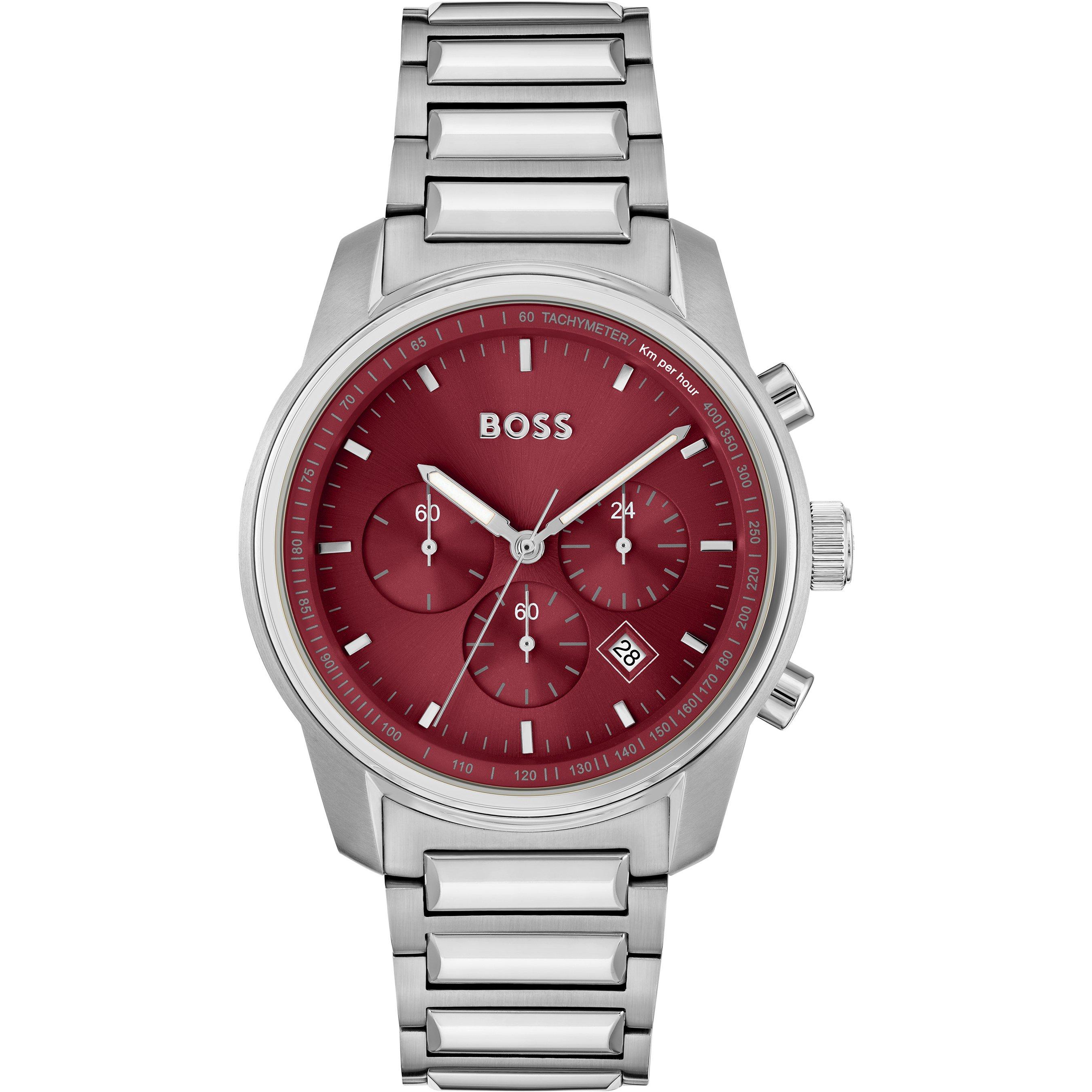 The BOSS Trace Watch delivers accurate timekeeping with bold design elements. Featuring a substantial 44 mm case, this chronograph unites functionality with style through its precise date function and robust water resistance to 5 bar.