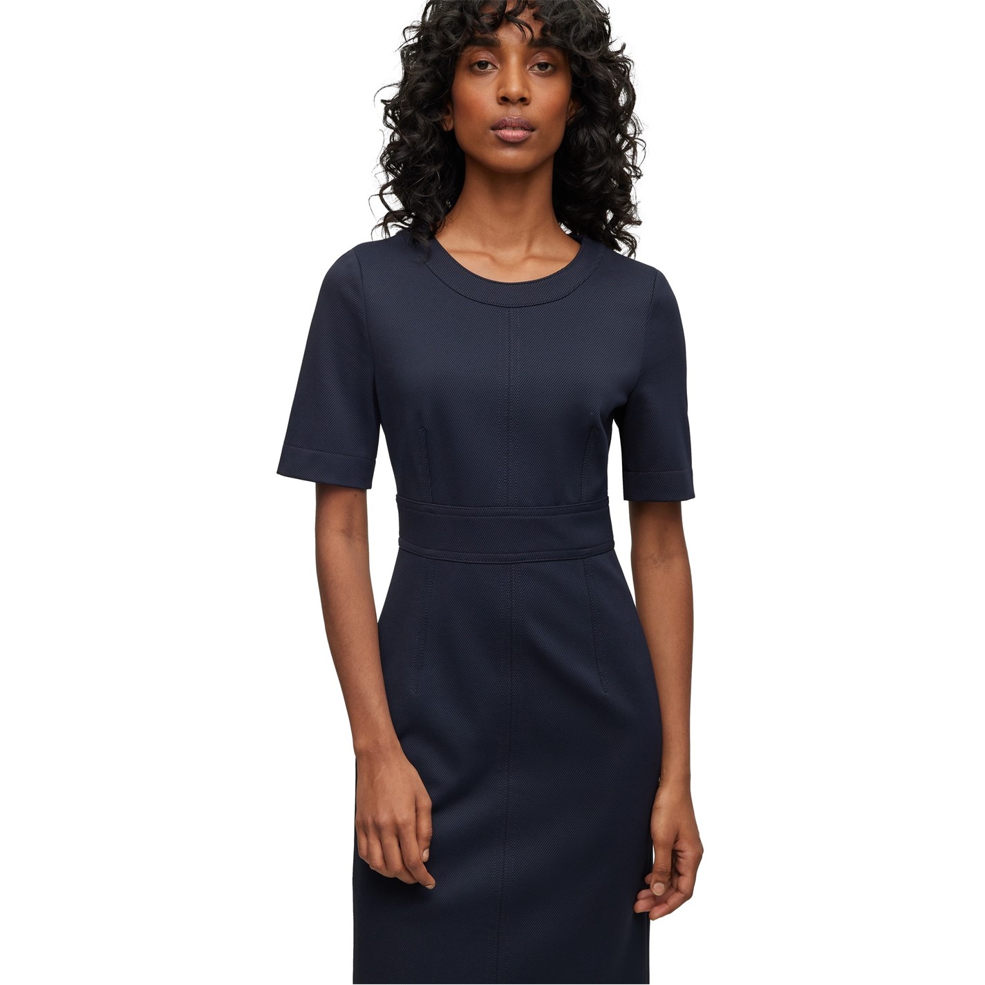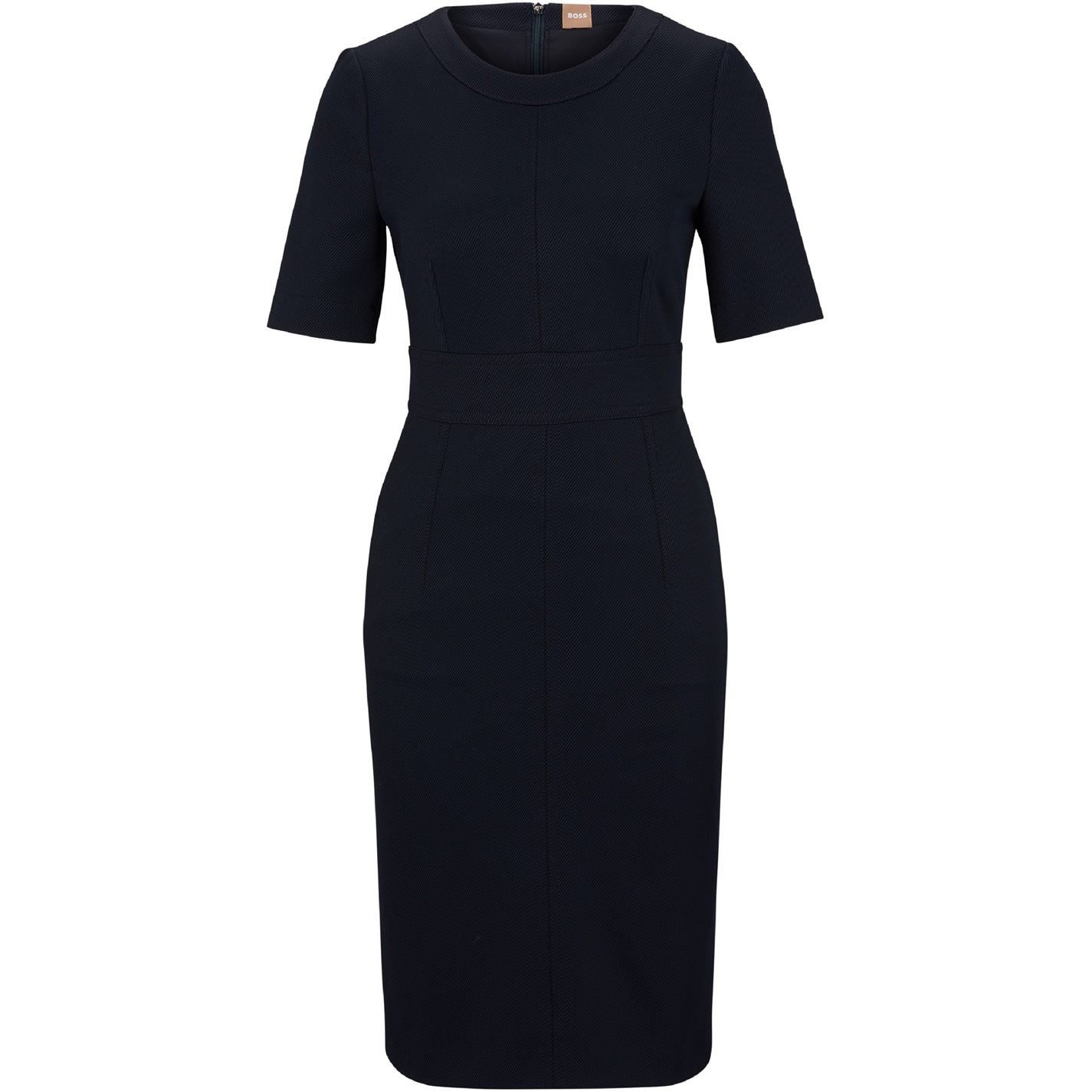 BOSS's Dirula Mini Dress features a tailored design with clean lines and structured seaming. The precisely cut shape showcases a mini length design from this designer fashion brand.