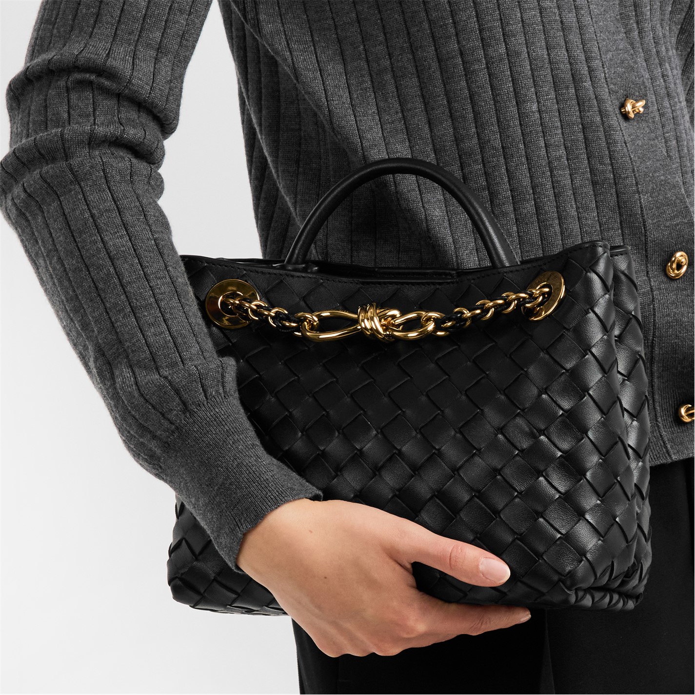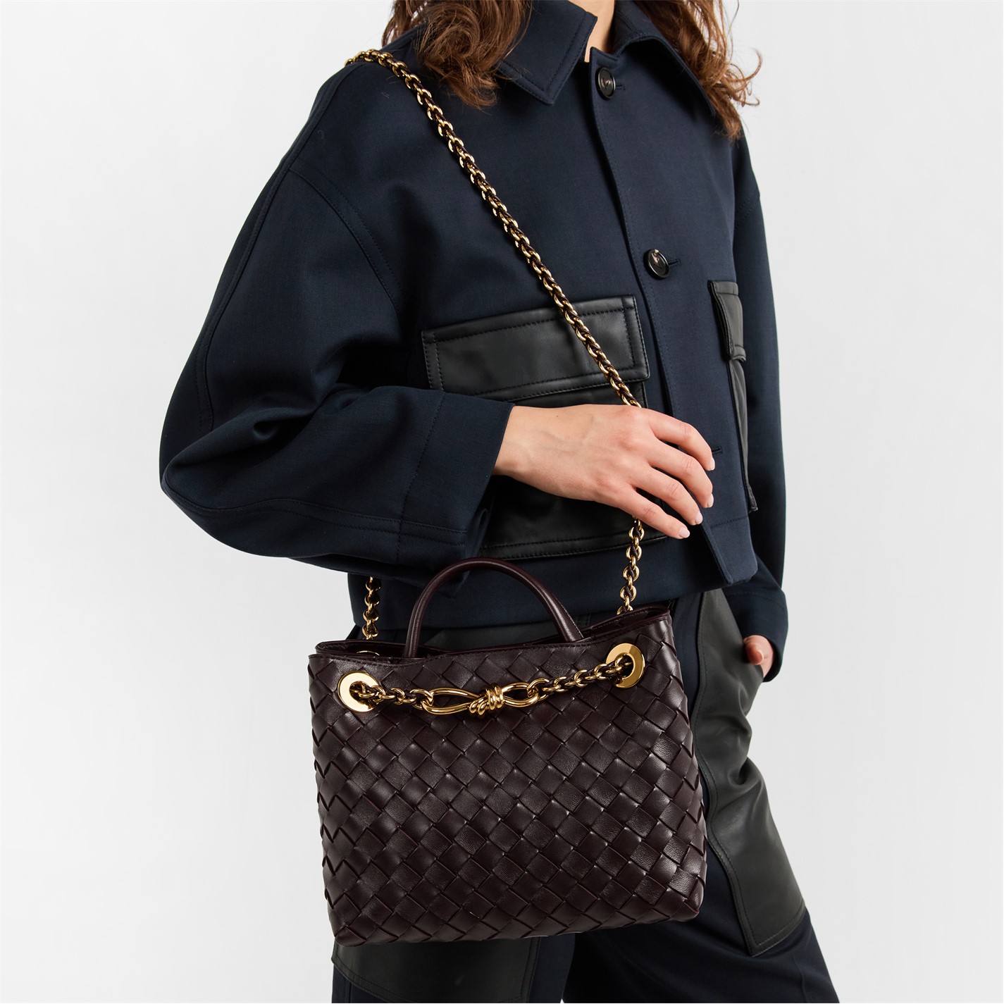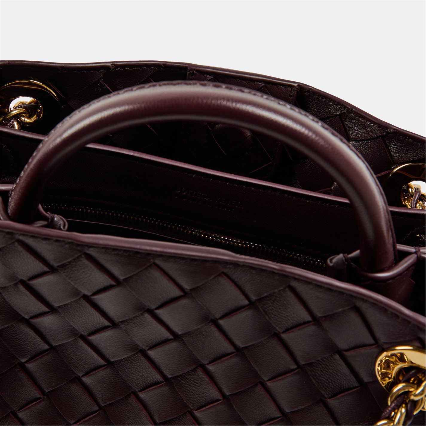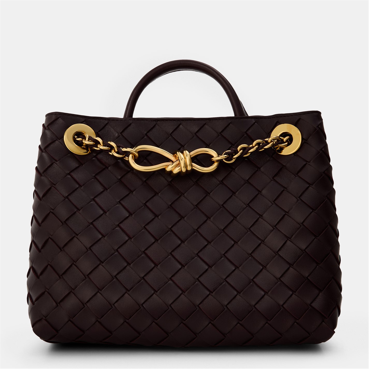 Inside the magnetic closure, you'll find a lambskin bonded Intrecciato lining with one zipped and two open pockets, providing ample space to keep your essentials organised yet easily accessible. Perfect for both casual and formal occasions, the Small Andiamo With Chain is the ultimate companion to provide that added touch of luxury.