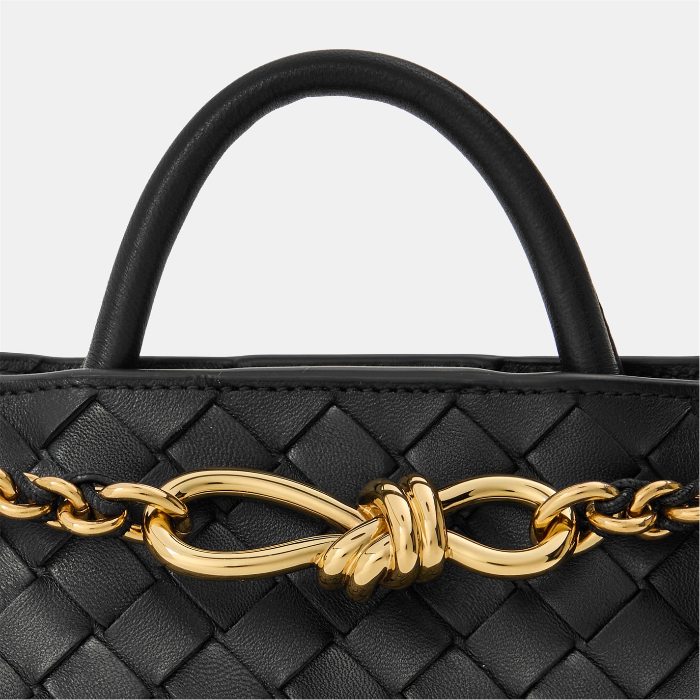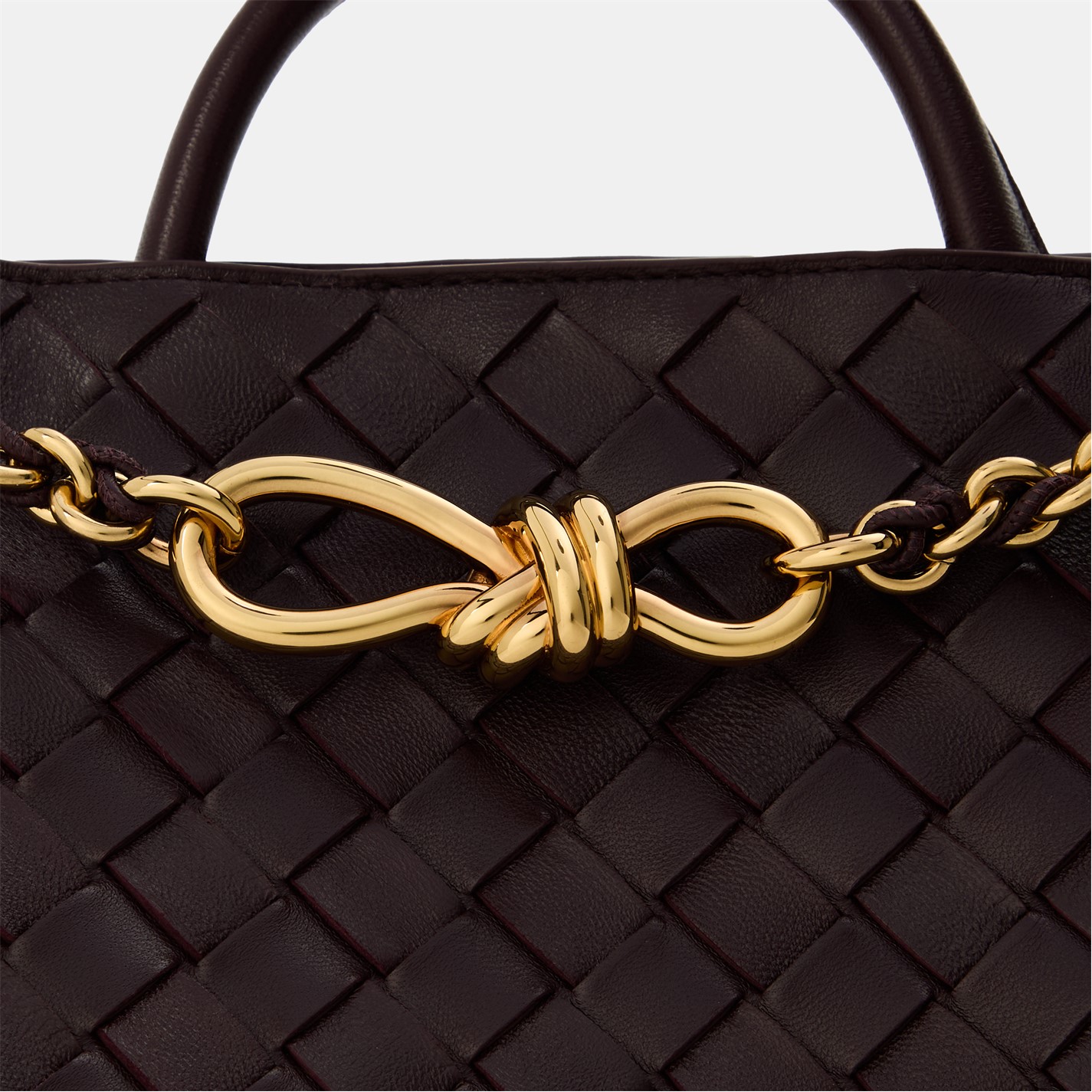 Embrace the art of understated glamour with the Bottega Veneta Small Andiamo With Chain, a coveted investment accessory that transcends fleeting trends. Expertly constructed in Italy from supple Intrecciato lambskin, the bag boasts a beautifully woven texture that is a hallmark of the Bottega Veneta brand. The brass finish signature knot detailing on the front serves as a symbol of the brand's iconic artistry and luxury prestige. Designed with an added tubular leather braided metal chain, this top-handle leather bag offers versatile carrying options.
