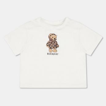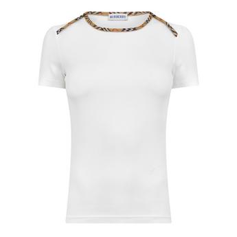 Discover the new season collection of Burberry t-shirts and tops, offering styles for men, women and kids. The sleek designer range includes fitted tops and oversized silhouettes in the brand's signature check print designs, monogram pattern and logo embossed styles to create a statement look. Find short sleeve and long sleeve Burberry t-shirts, perfect for warmer and cooler days. Laidback pocket tees and graphic print pieces embossed with the brand's check print bear motif freshen up your casual wardrobe whilst bodysuits and crop tops are perfect for special occasions. Find your ideal outfit in various hues including the brand's trademark camel colour palette, classic black and white tees or flamboyant hues to make quite the statement. Shop the Burberry t-shirt and top and selection.