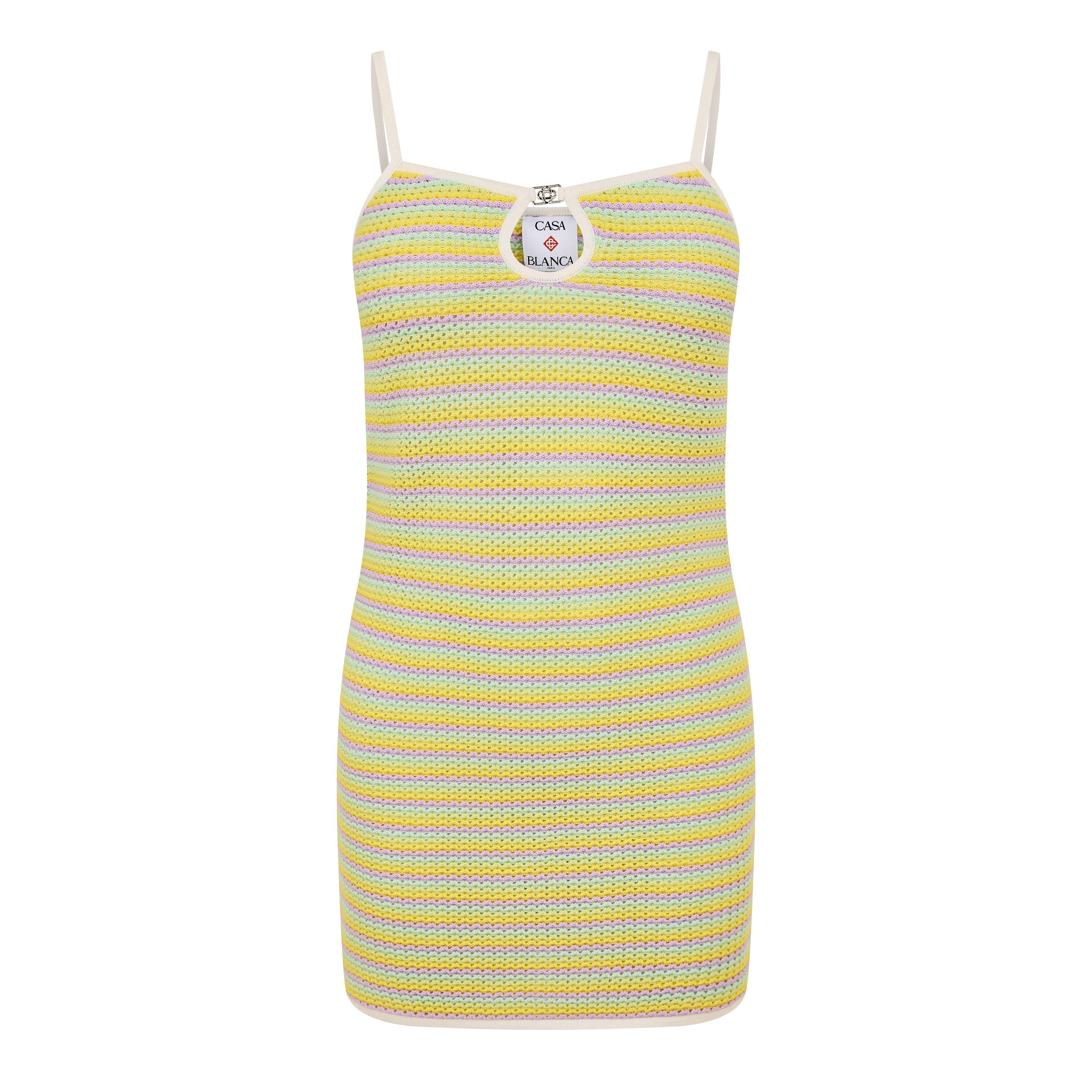 Casablanca's Crochet Mini Dress features an open-weave design that creates a defined, breathable profile. The mini-length cut is ideal for warm-weather wear.