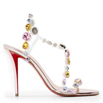 Step into the new season with Christian Louboutin sandals. Explore a collection of red bottomed sandals perfect for your summer shoe-drobe. Pick out heeled sandals to pair with flowing dresses and introduce an espadrille-inspired heel for a stylish touch. Strut out in Louboutin strappy heels or opt for comfort in must-have Louboutin sliders. Add signature spiked detailing for a statement or keep to minimal silhouettes with black Louboutin sandals.