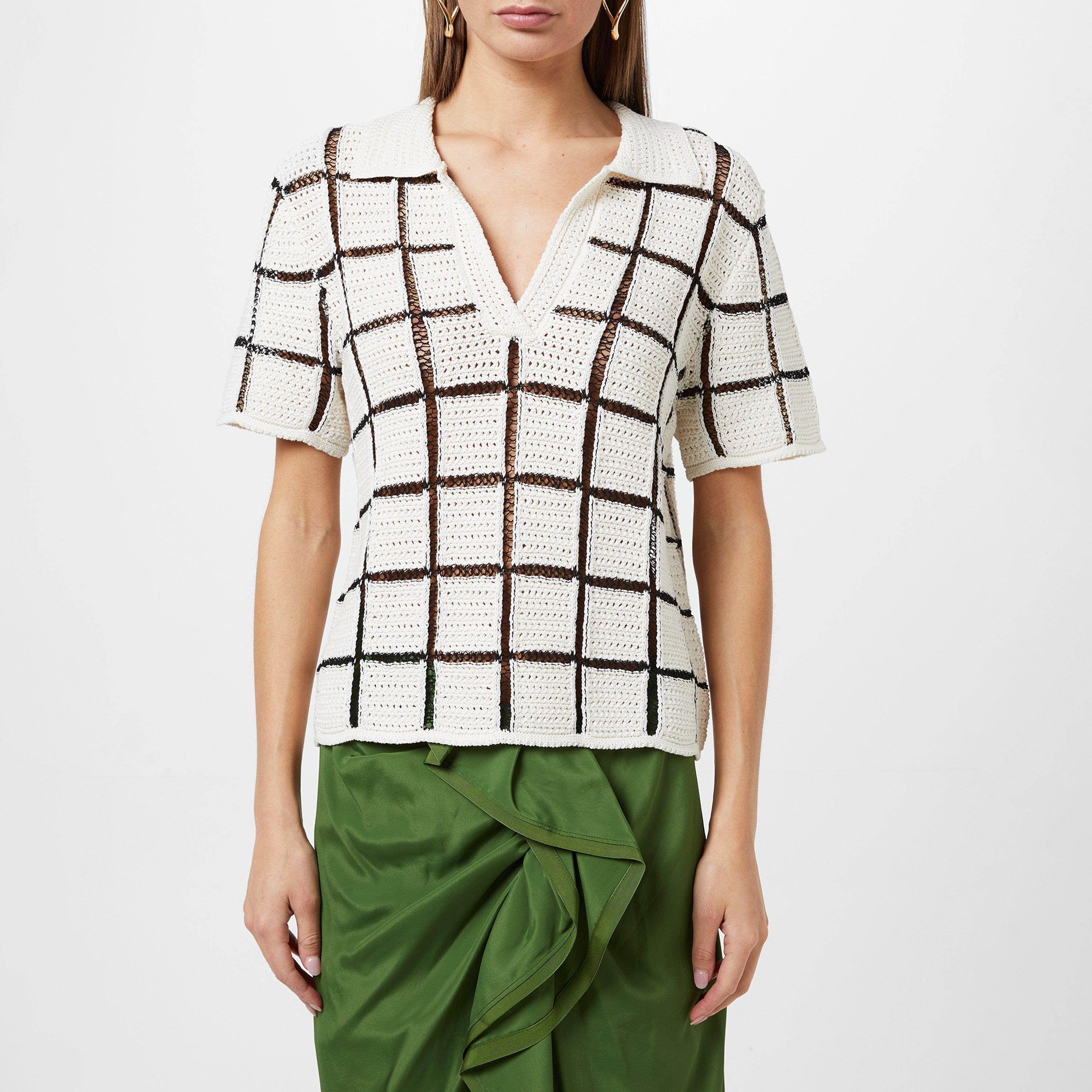 Designed in a captivating beige and black colourway featuring an all-over check motif creating an aura of exclusivity and tasteful opulence. Whether attending a fashionable event or a social gathering, the Block Stitch Polo Top by Dries Van Noten is the perfect wardrobe essential.
