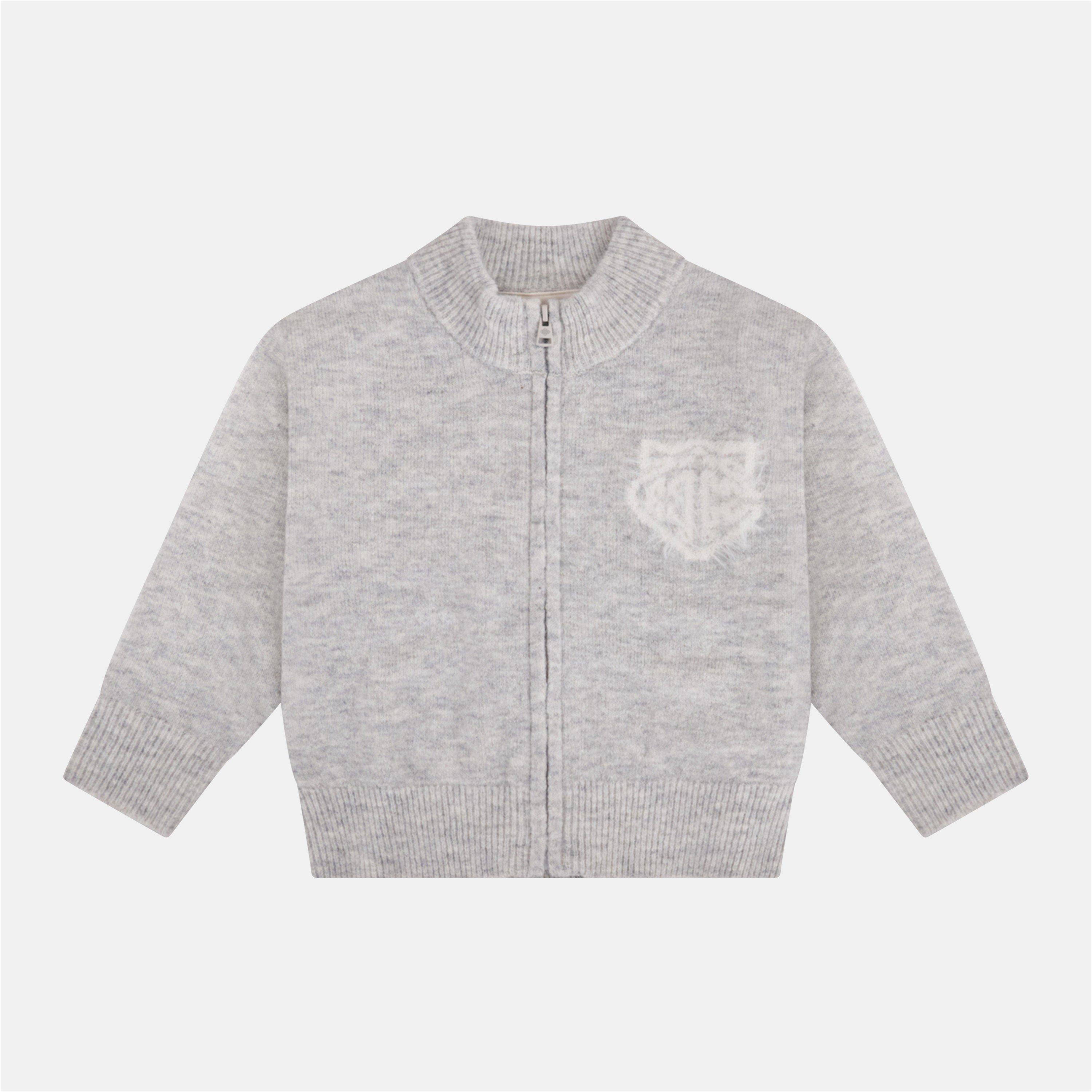 Juniors Monogram Fluffy Knit Zip Through