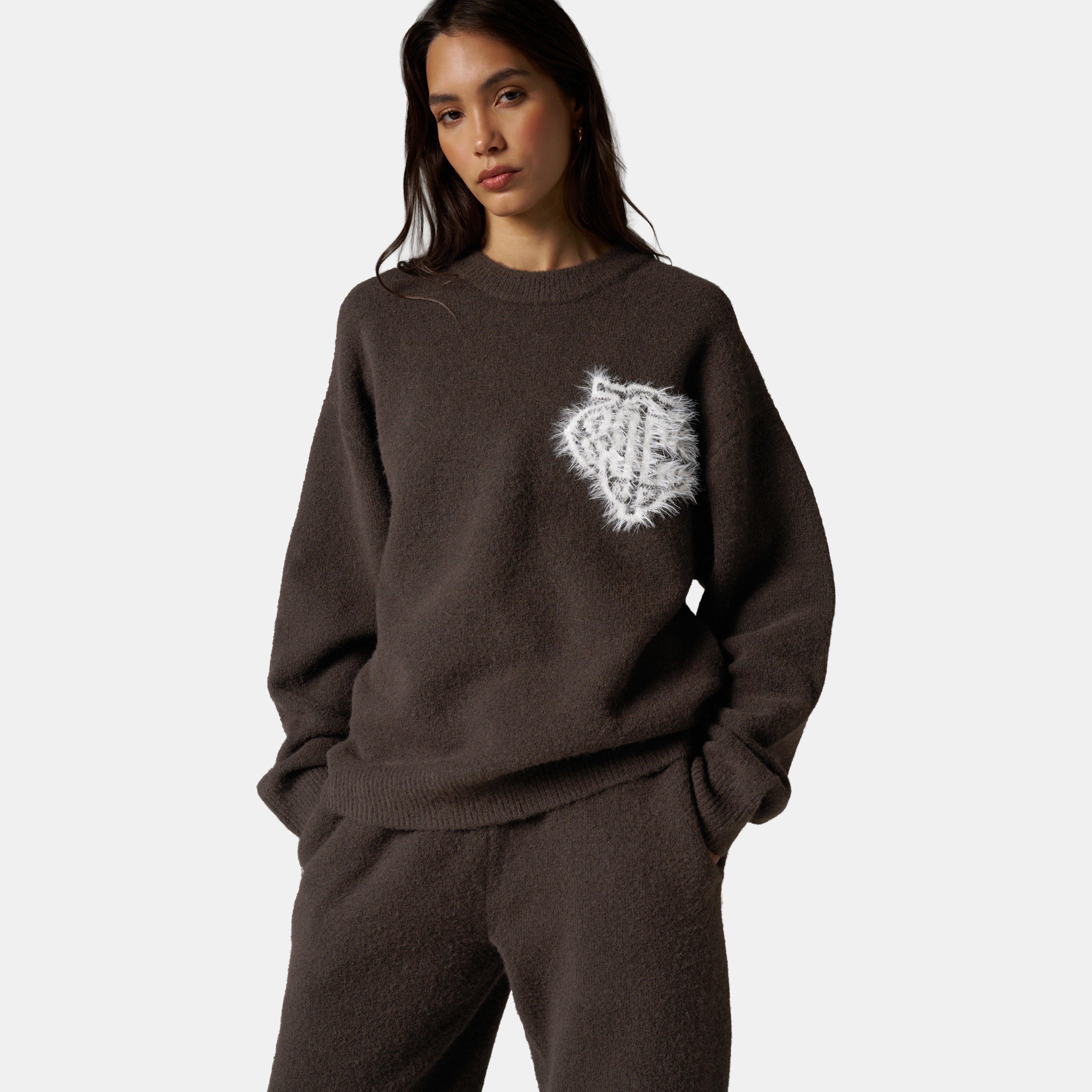 Womens Fluffy Knit Crew Sweater