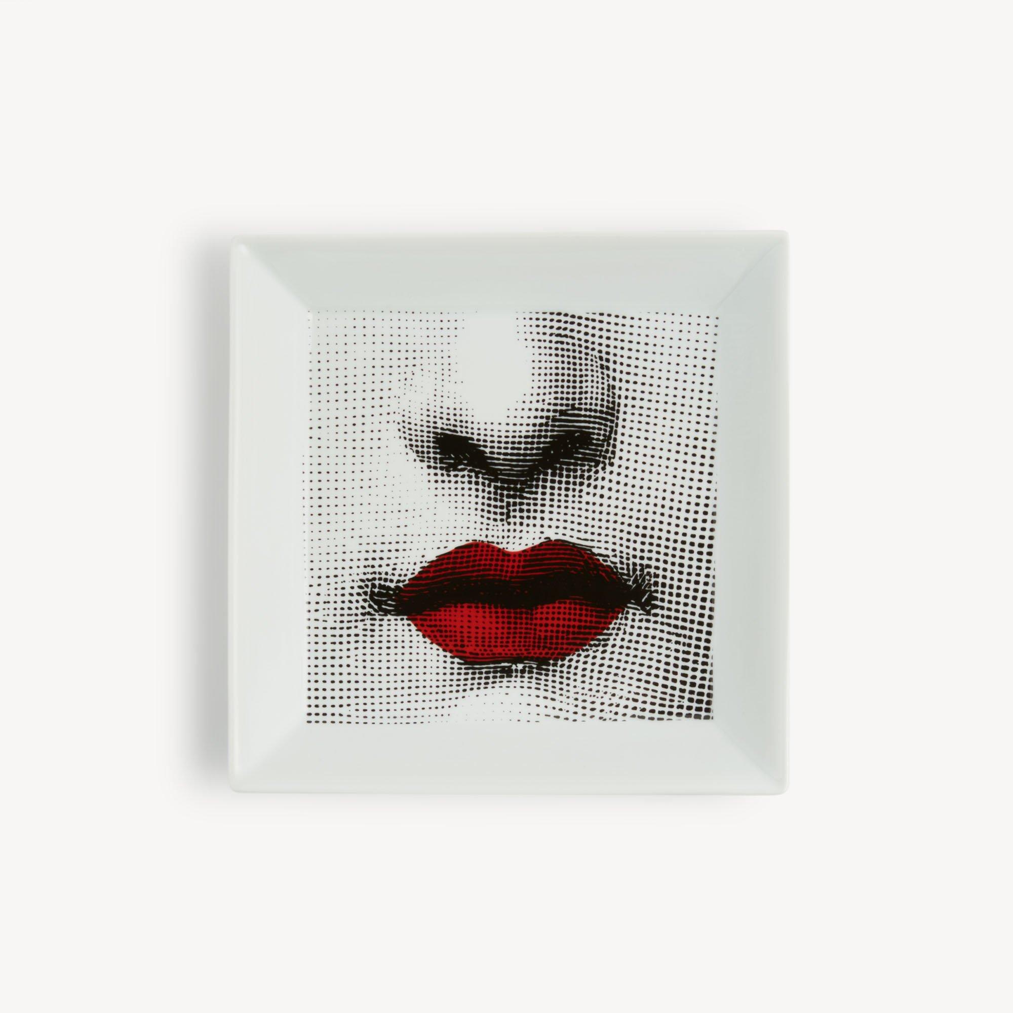 Give your interior walls the attention they deserve with the unmistakable style of the Tema e Variazioni collection from iconic brand Fornasetti. The classic black and white design of this signature series lights up with red in the form of this striking square wall plate depicting the sensual lips of favourite muse, opera singer Lina Cavalieri. Perfect for anyone who wants to impress with their décor or as a special gift.