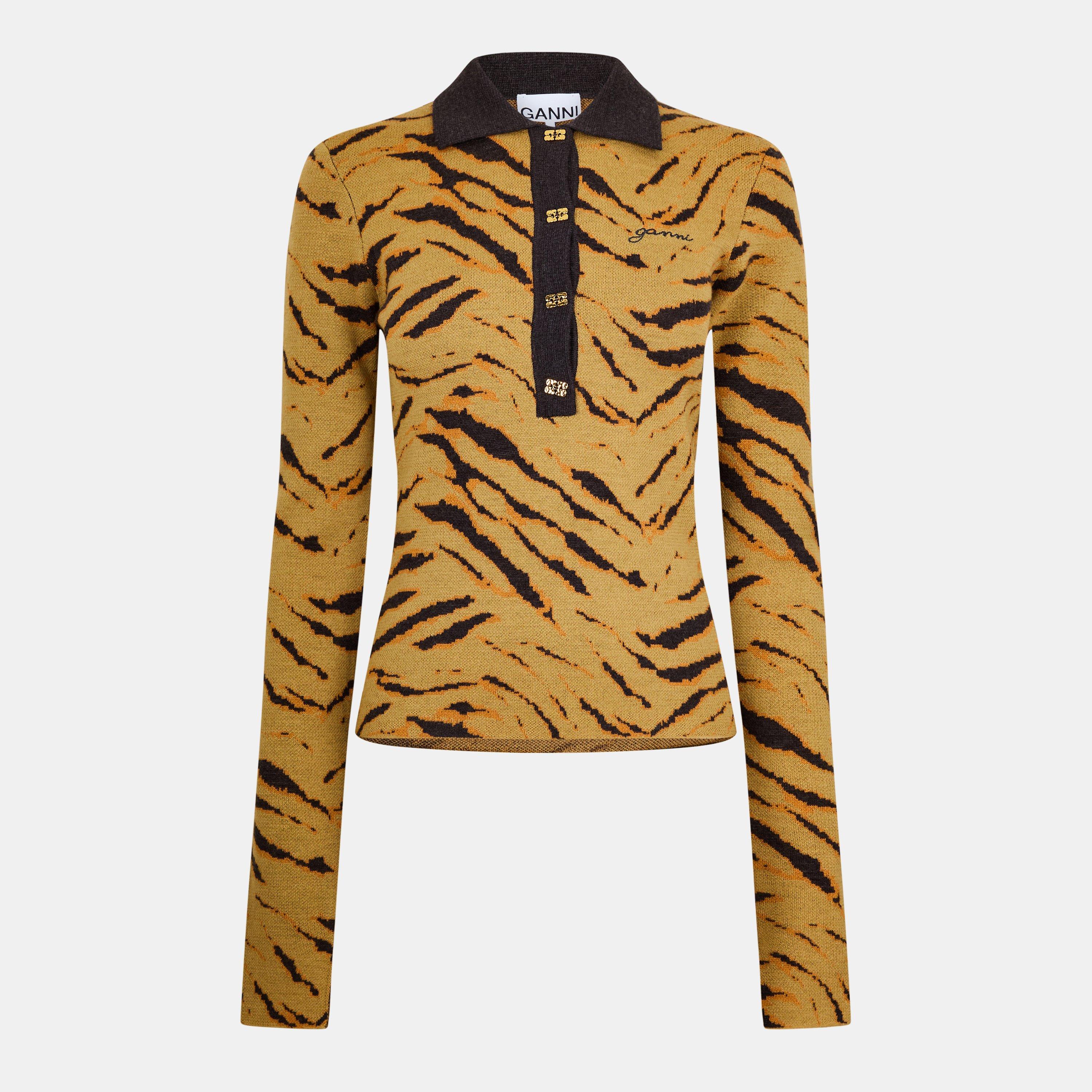 Contemporary, chic and stylish this Polo Leopard Top from Ganni exudes an eye-catching appeal. Effortlessly trendy and intricate, this long-sleeved top instantly punctuates your ensemble with an iconic appeal, whilst enhancing your comfort with its soft, breathable feel. From day trips out with friends to the office commute, this chic top offers a suave yet casual touch to your daily dressing.