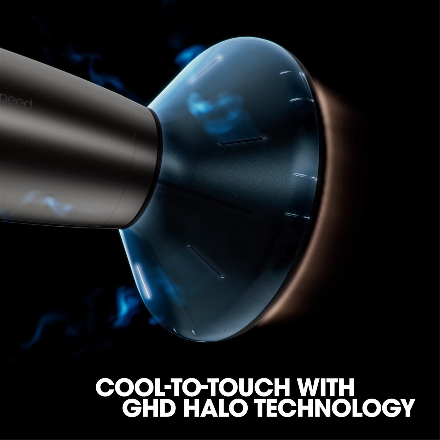 The transparent outer layer reveals the double-layer ghd halo™ dual-airflow technology inside, where advanced design meets performance, keeping the diffuser cool to the touch by allowing cool air to surround the case.