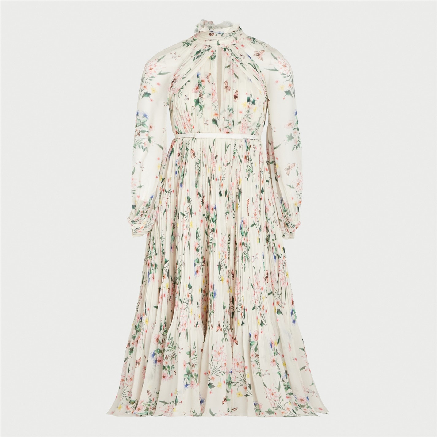 Giambattista Valli unveils its Botanical Draped Dress - adorned with a delicate floral print and a bow detail at the waist. The botanical print, a hallmark of the House's aesthetic, beautifully encapsulates the collection's theme of refined florals, which recur across multiple pieces. This dress effortlessly embodies the timeless sophistication and nature-inspired charm synonymous with the brand's identity. Perfect to be styled for a glamorous summer soiree.