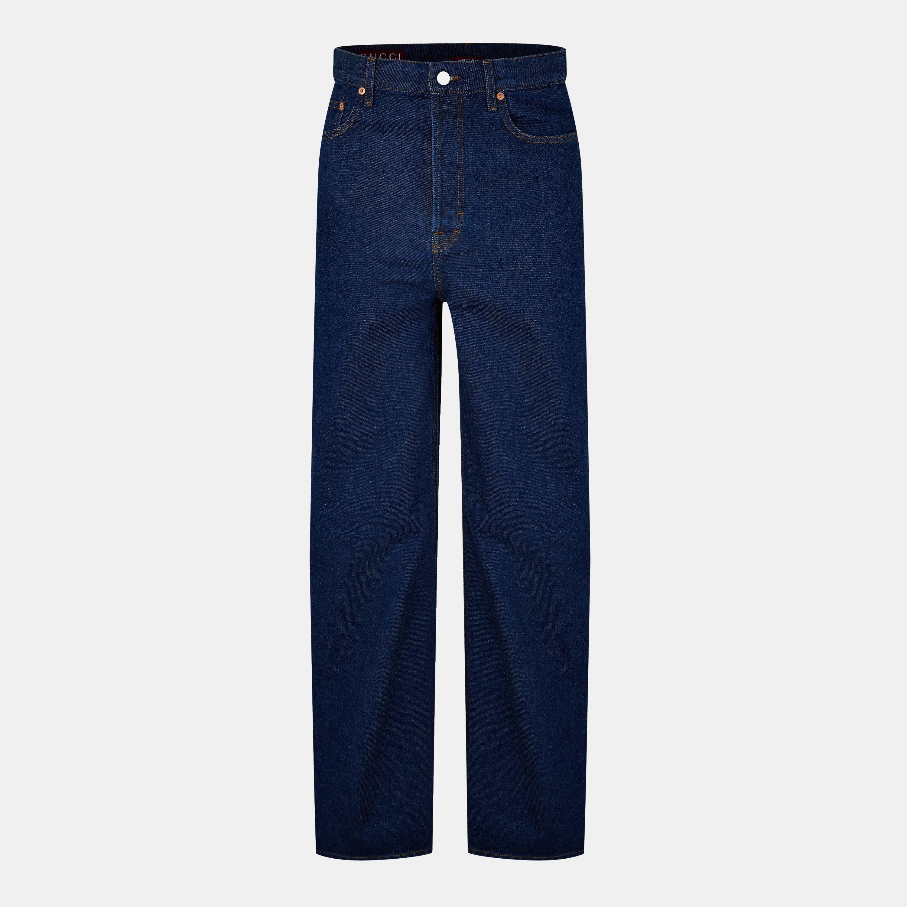Own the streets with Gucci's Baggy Jeans. With a relaxed, luxurious touch and a logo leather patch at the rear waistline, these jeans effortlessly blend casual cool with authentic style. Whether you're adding a laid-back vibe to your evening look or hitting the city streets, these jeans are your ultimate statement piece.