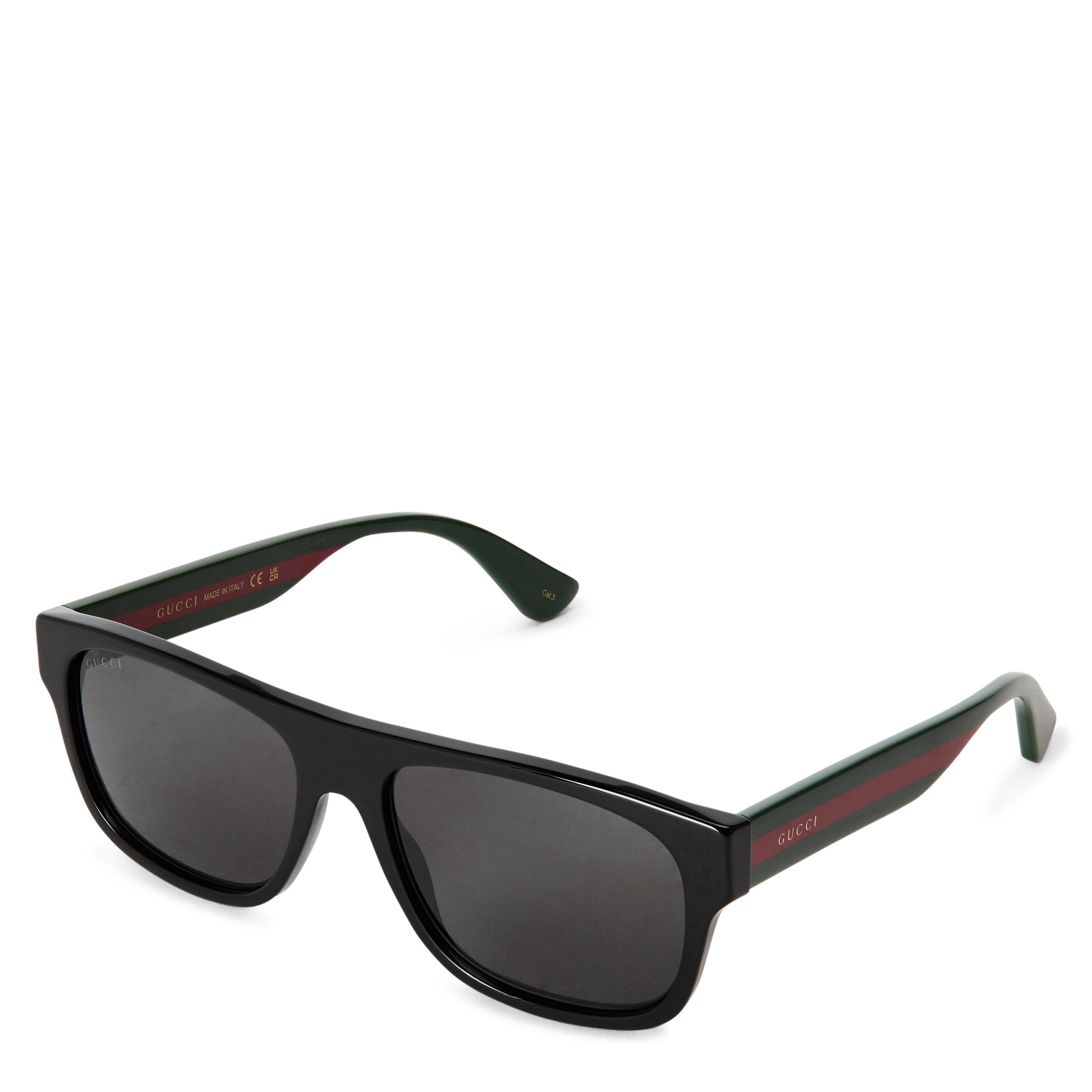 Gucci's Web Square Sunglasses combine luxury with practicality in a refined fashion accessory. These men's shades showcase the brand's iconic Green and Red Web detail and premium acetate rim design, perfect for both coastal adventures and city style statements.