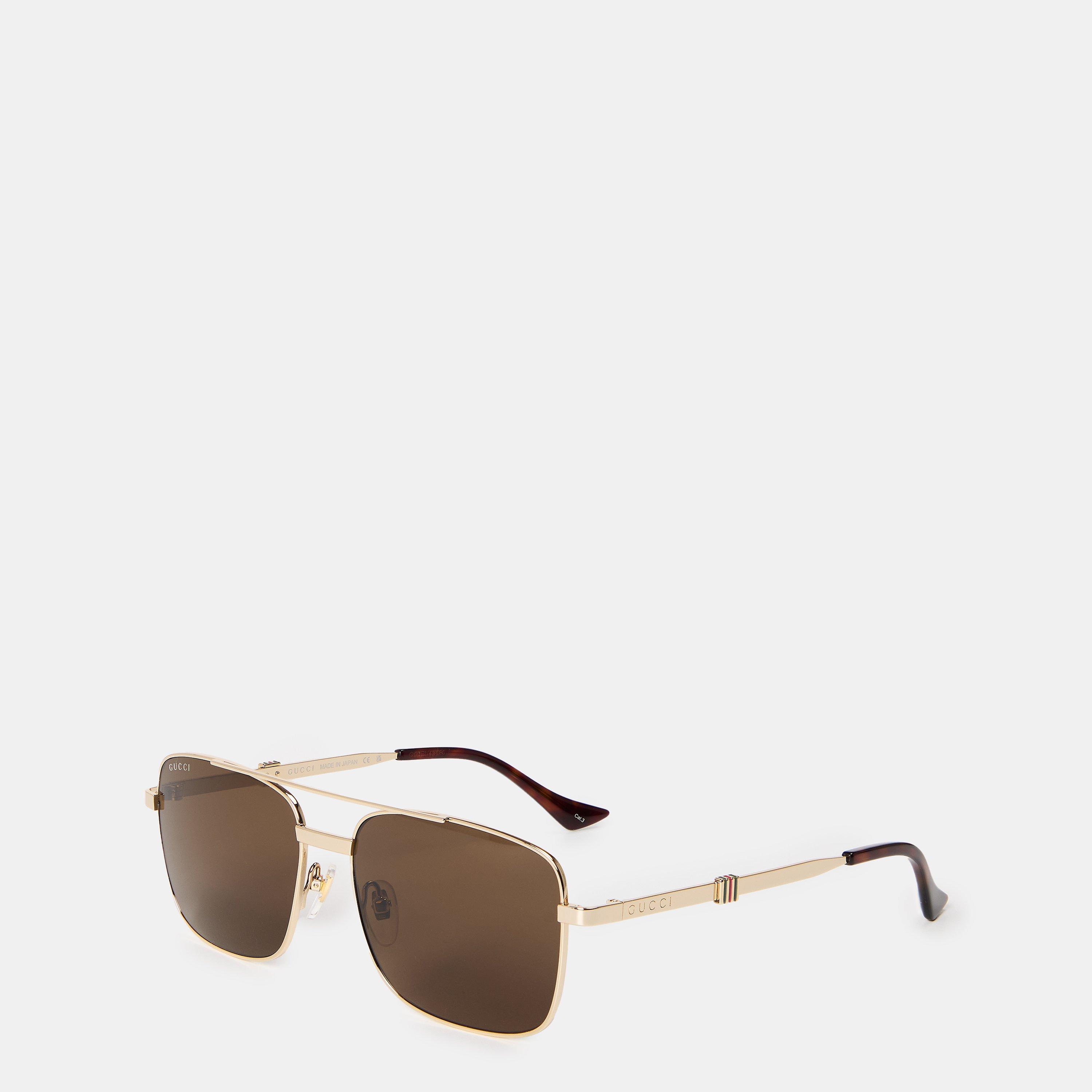 With the rubber nose pads for enhanced comfort, these sunglasses are meticulously made in Japan, reflecting Gucci's commitment to quality craftsmanship and attention to detail. Complete with shiny gold-toned metal temples showcase engraved Gucci lettering, Web enamel detailing, and dark tortoiseshell acetate tips, ensuring a striking and unique look that sets you apart from the crowd.