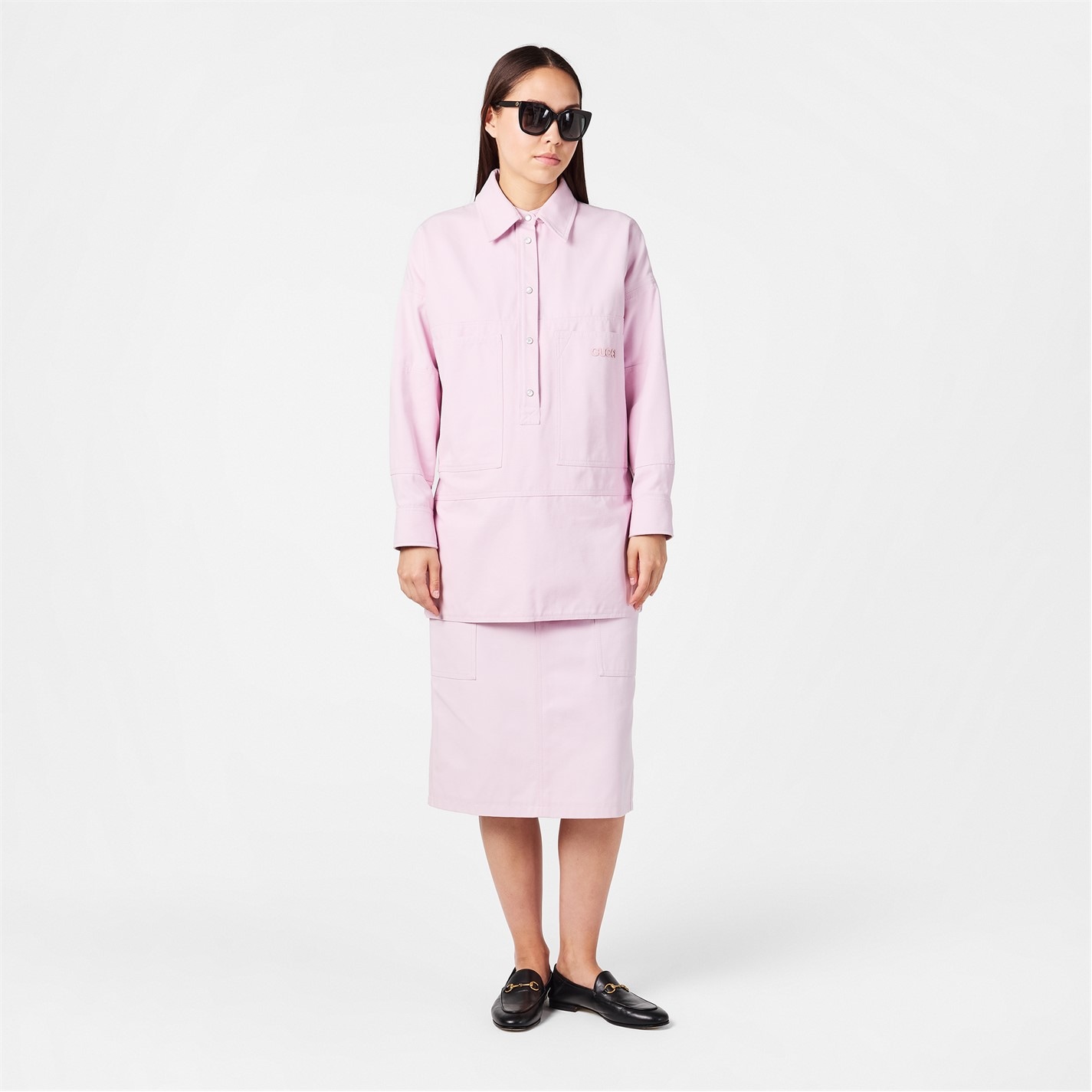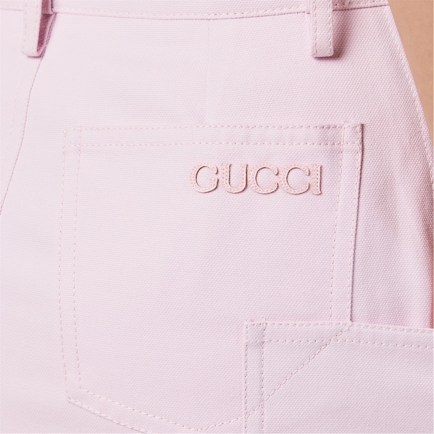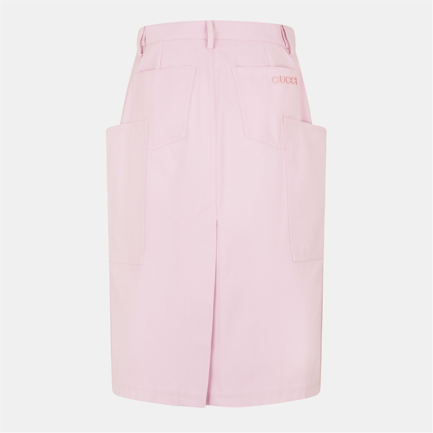 Enhance your everyday style with Gucci's Canvas Midi Skirt, a brand synonymous with luxury and Italian craftsmanship. Adorned with signature branding to the rear, creating a bold and iconic finish. Perfect for chic office days to sophisticated weekend outings.