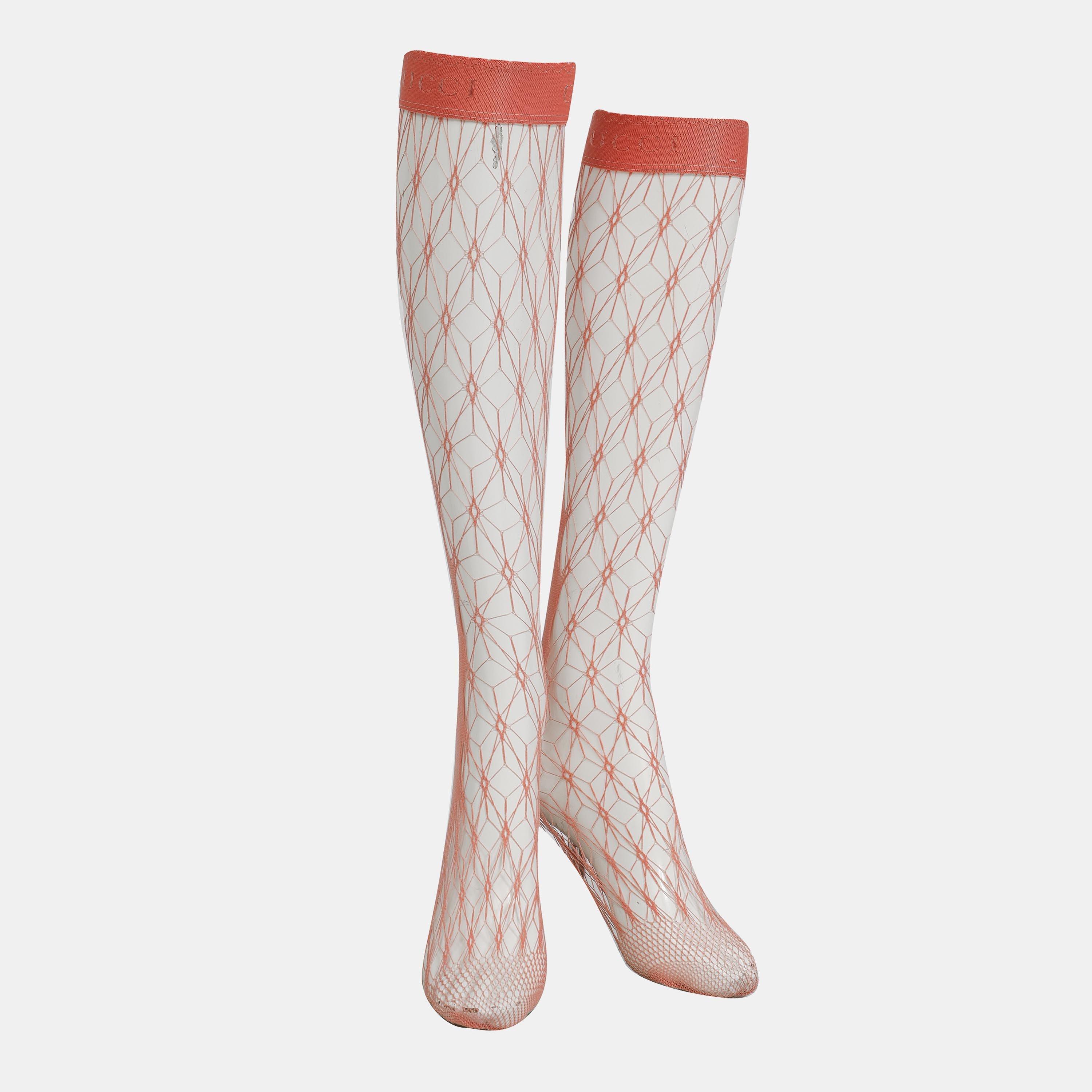 The Gucci Women's Crew Socks sit at mid-calf height. A classic profile brings comfortable coverage with secure wear.