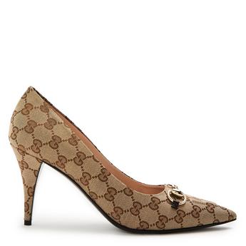 Women's Motif Canvas Horsebit Sling Pumps