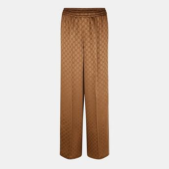 Refine your wardrobe with the Gucci trousers edit. Incorporate Italian flair into your wardrobe with signature design elements from this esteemed fashion house. Elevate your casual collection with luxury joggers adorned with the iconic interlocking 'G' emblem or the green and red striped detailing that is synonymous with the brand's identity. For more refined occasions, explore impeccably tailored trousers adorned with designer touches. Alternatively, opt for understated styles in sleek monochrome and earthy tones for a cohesive and versatile look. Choose from classic silhouettes with wide and straight-leg cuts that can be effortlessly styled however you desire. This season discover the Gucci trouser collection.