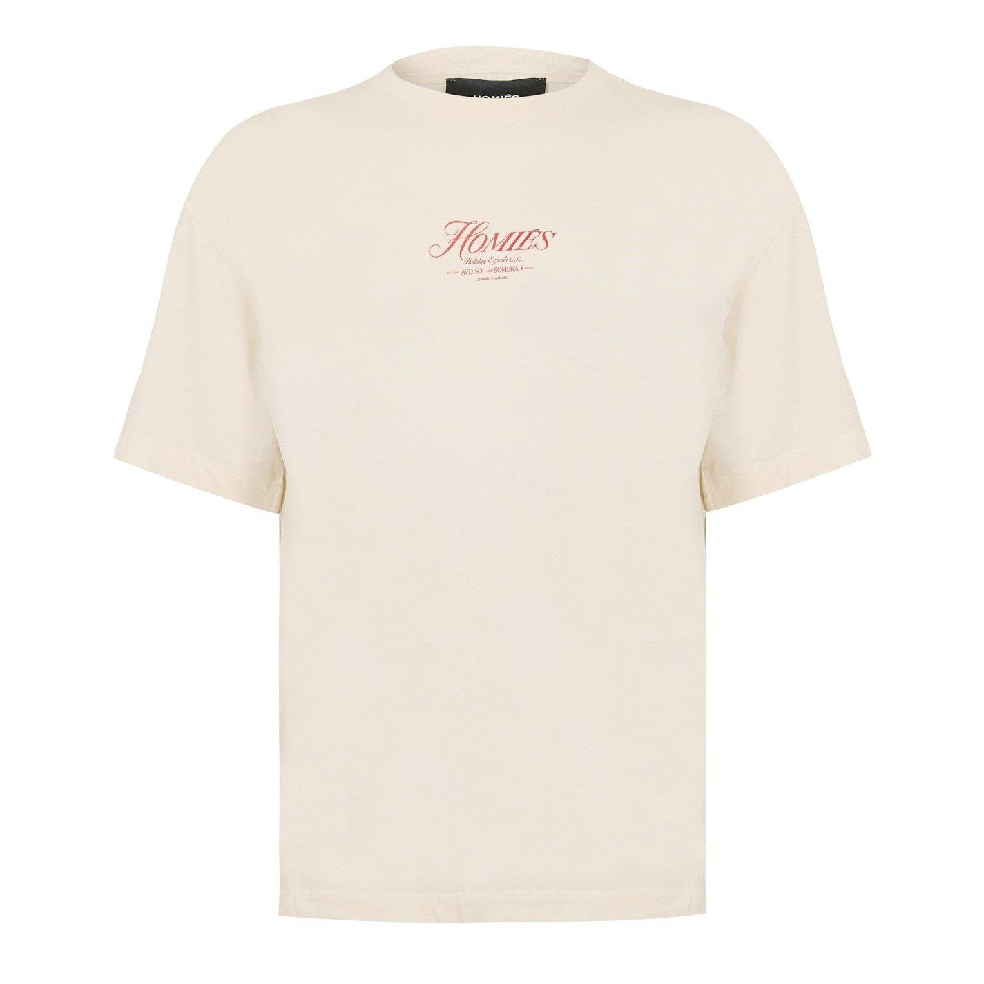 Relaxed fit t-shirt made of 100% cotton in beige. Featuring a digital print on the front chest and a maxi print on the back. Relax at la piscina.