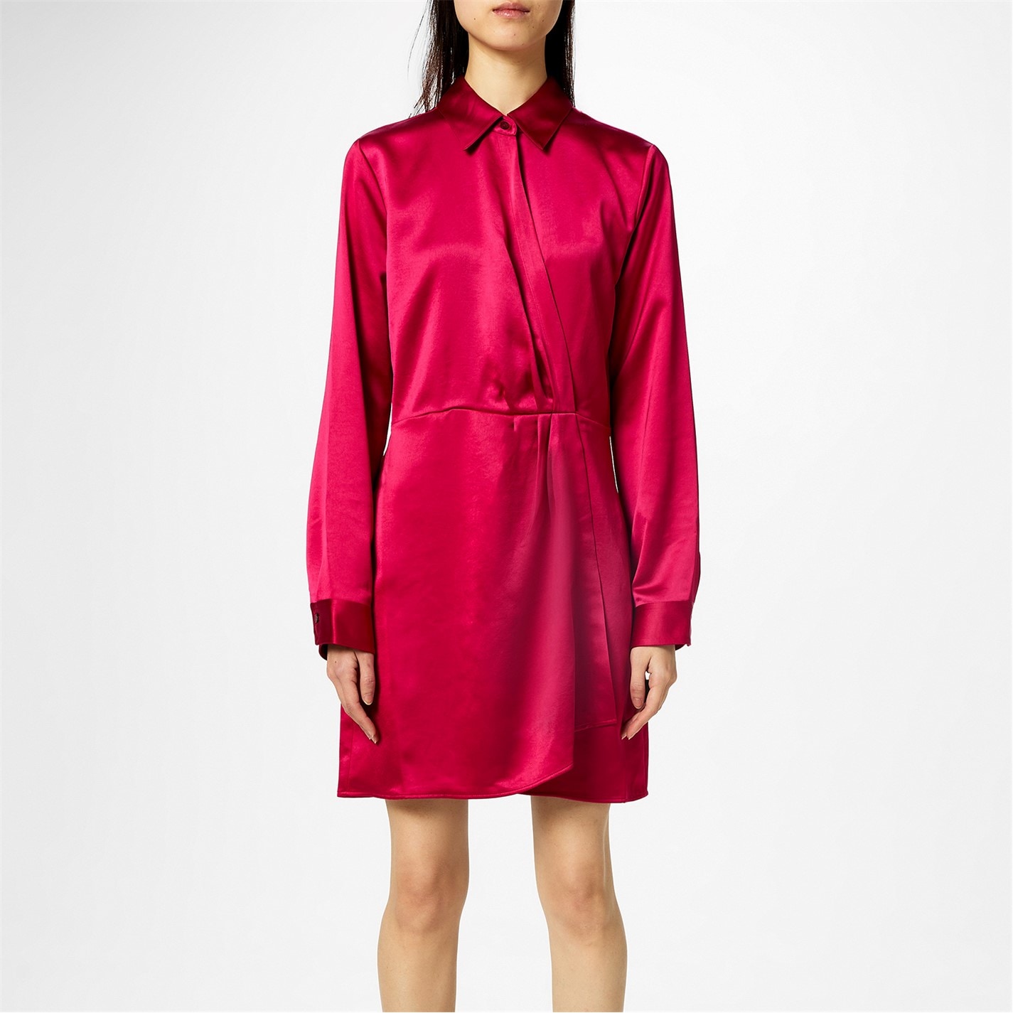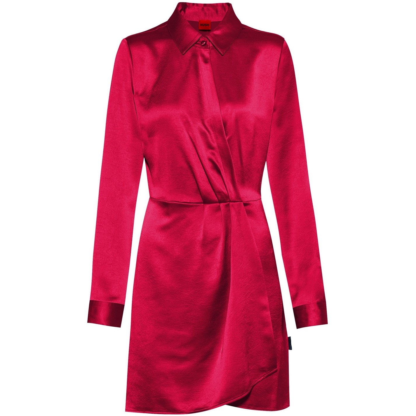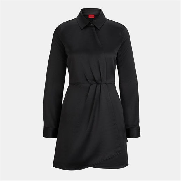 Crafted from a luxurious recycled polyester blend, this dress exudes a satin finish for a touch of opulence. With its regular fit and waist-hugging silhouette, the Katharulla Dress subtly accentuates your curves. The mini length adds a youthful and trendy appeal, while the point collar with a single button fastening adds a timeless touch. The long sleeves with button cuffs add an extra element of style and versatility. One of the standout features of this dress is the flattering wrap front style, adorned with pleat details that effortlessly elevate your look, finished with the logo flag that is tastefully embroidered at the hem.