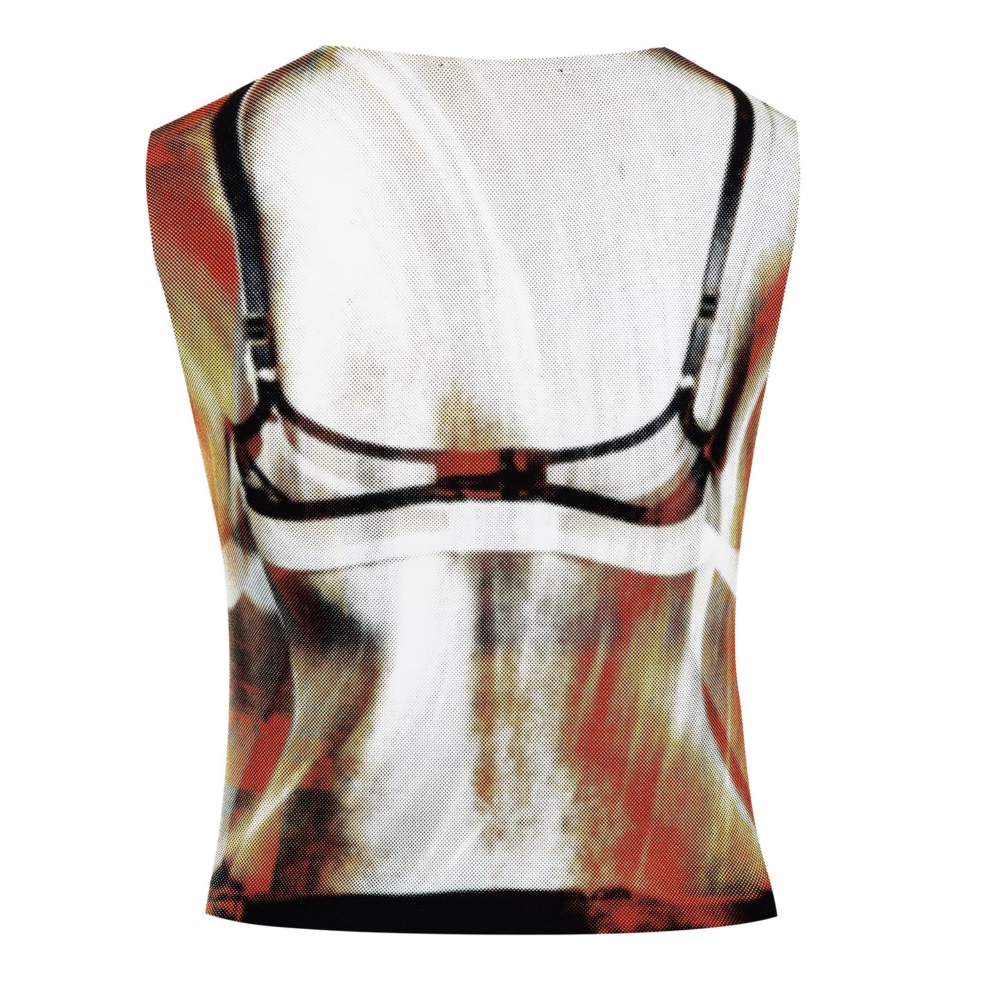 What truly sets this pullover vest top apart is the all-over Brad Illusion pint that creates a captivating and attention-grabbing visual effect, playing with the concept of lingerie as outerwear and capturing traditional editorial detailing. Whether you wear it on its own for a bold and daring look or layer it with other garments for a touch of edge, the Bare All Tank is the perfect choice for those who dare to be different.