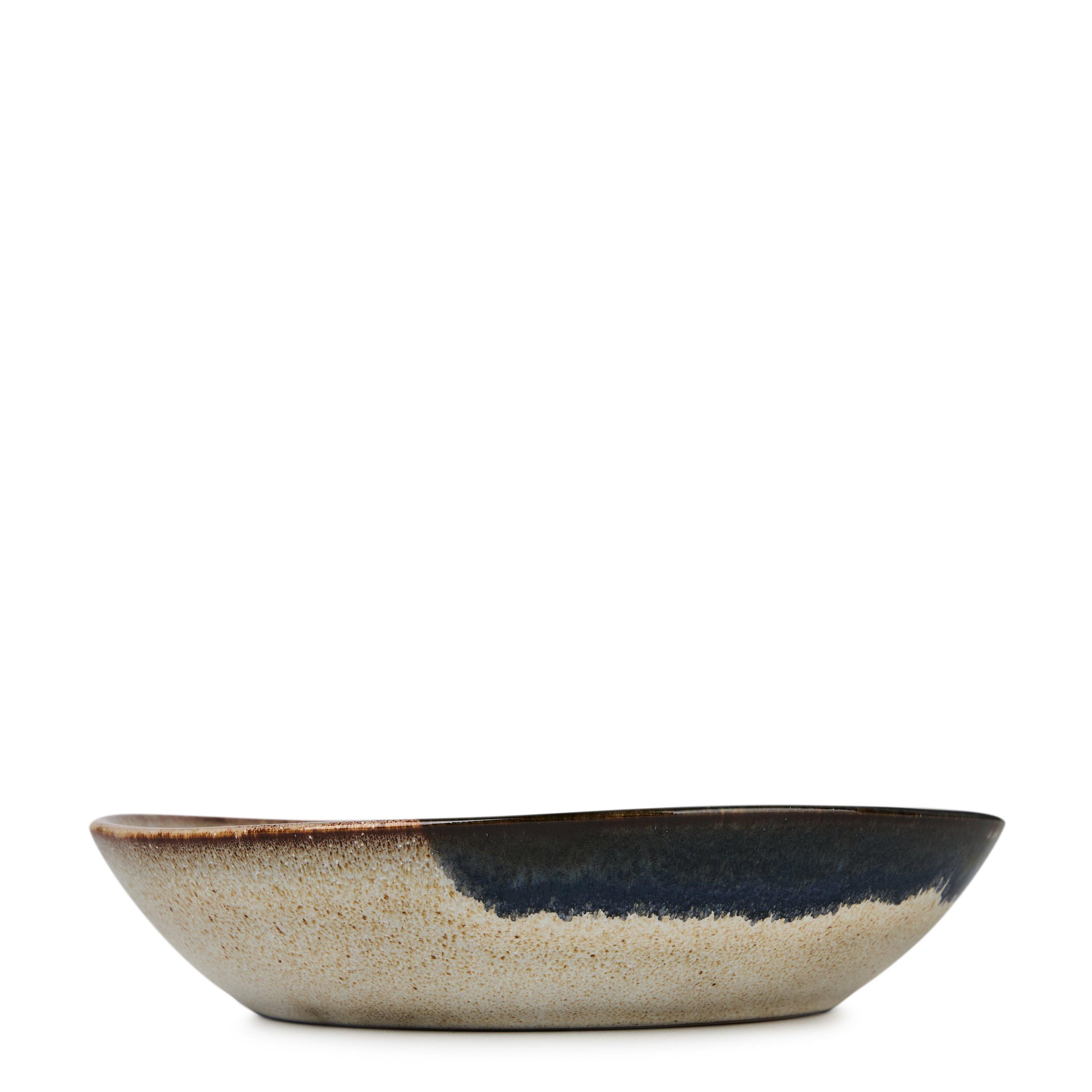 Artisanal craftsmanship meets modern design in the Jules Serving Bowl from Bloomingville. This distinctive piece showcases a striking blend of glazed finishes, creating an eye-catching contrast across its surface. The shallow, wide form makes it perfect for serving everything from salads to pasta dishes, while its organic aesthetic adds character to any dining setting. Each bowl features unique glazing patterns, making it a truly individual piece for your table.