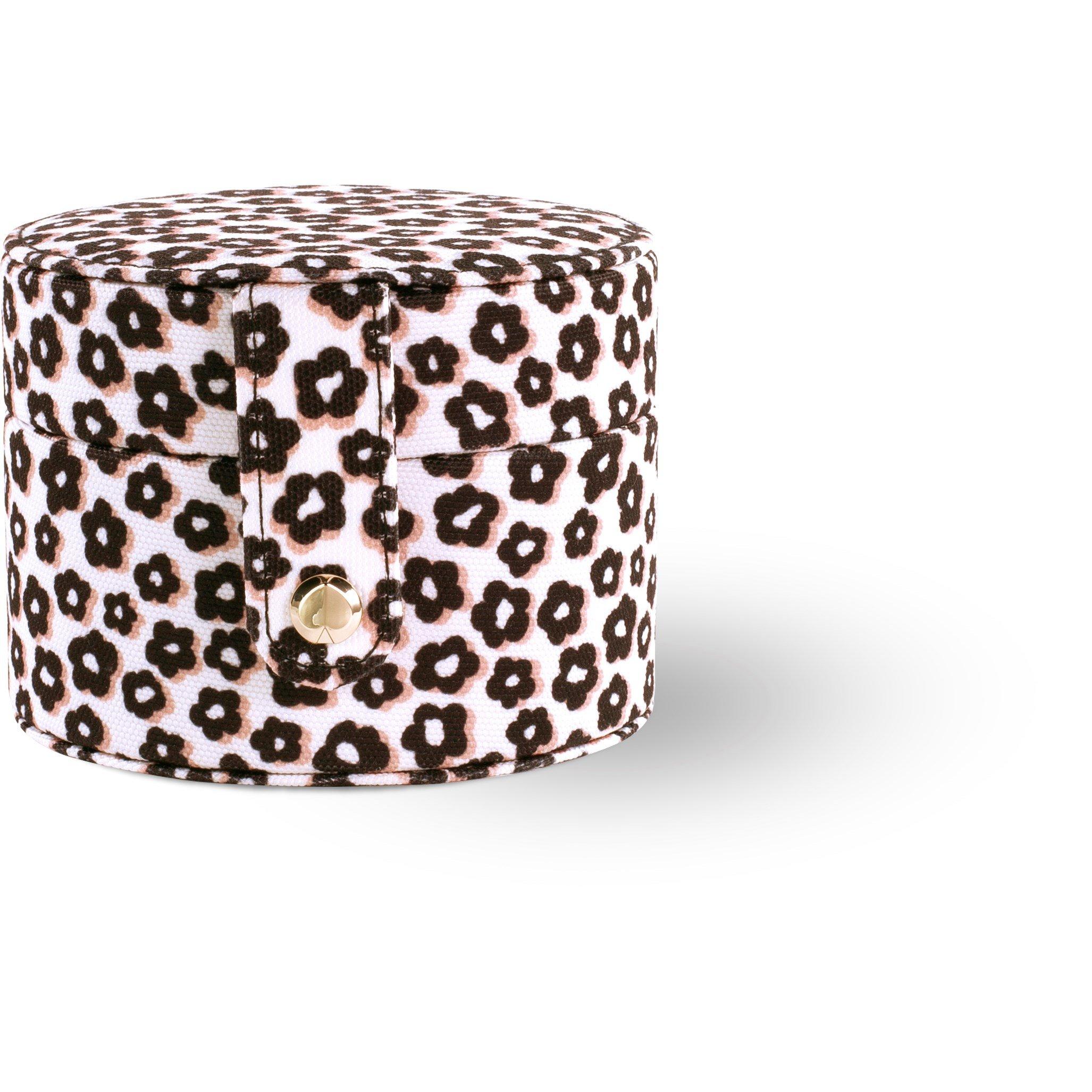 Keep your jewellery safe and travel in style with the travel jewellery case from Kate Spade New York. The box has a large compartment in the base and four divided compartments in the lid. Both sections secure with a round flap that sits on top, keeping your jewellery in place when the box is opened in half.