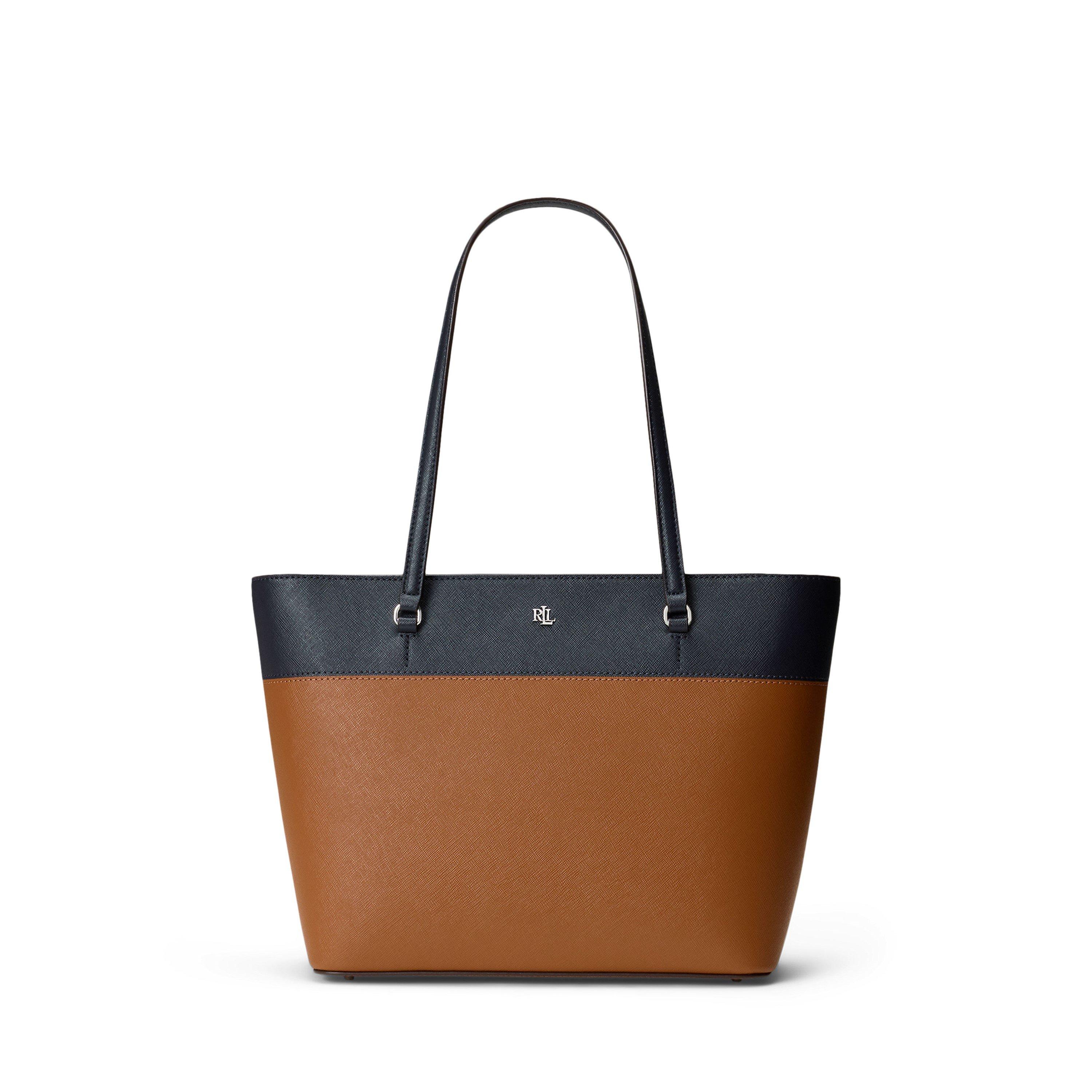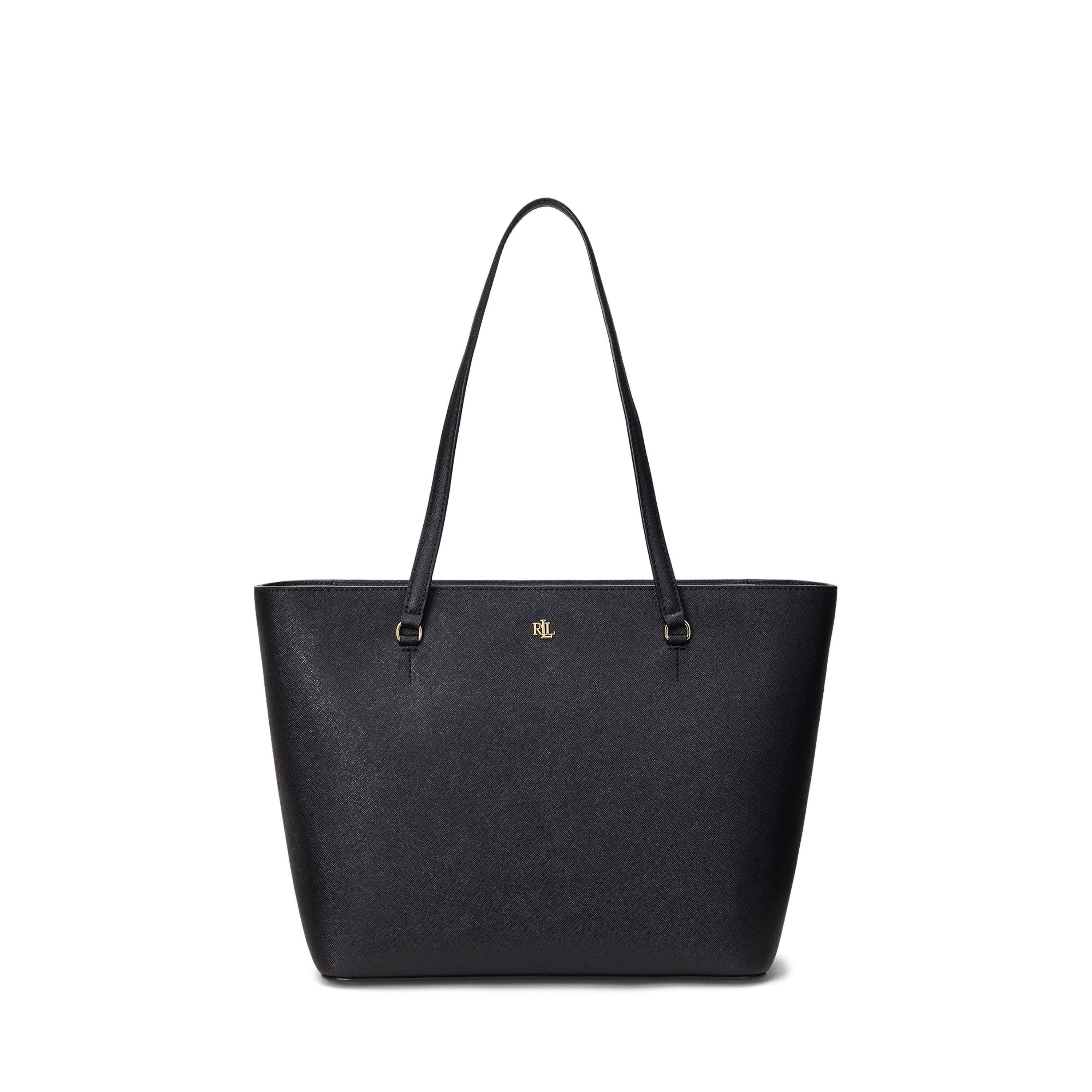 Lauren Ralph Lauren monogram in brass-finished metal on the front for instant brand recognition.