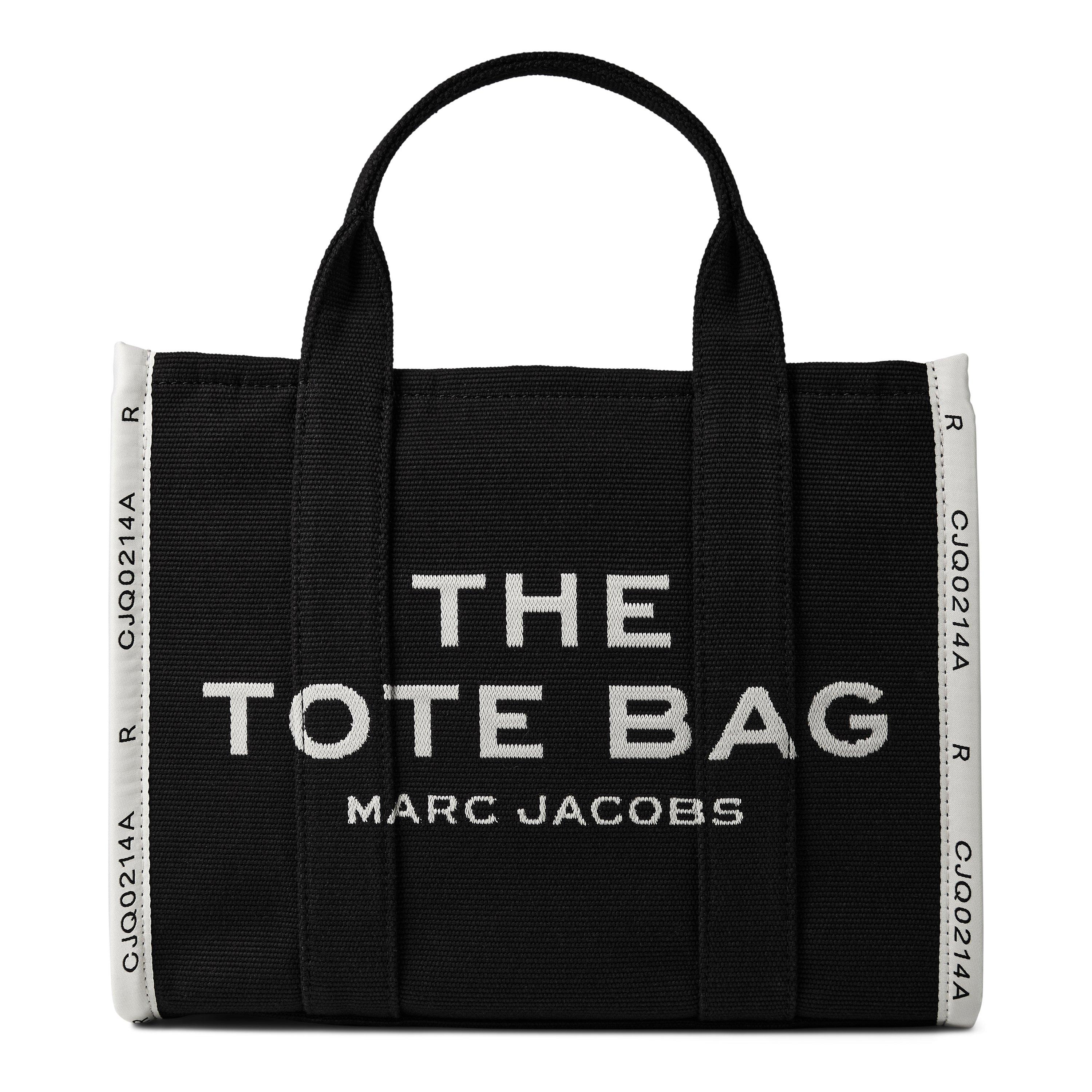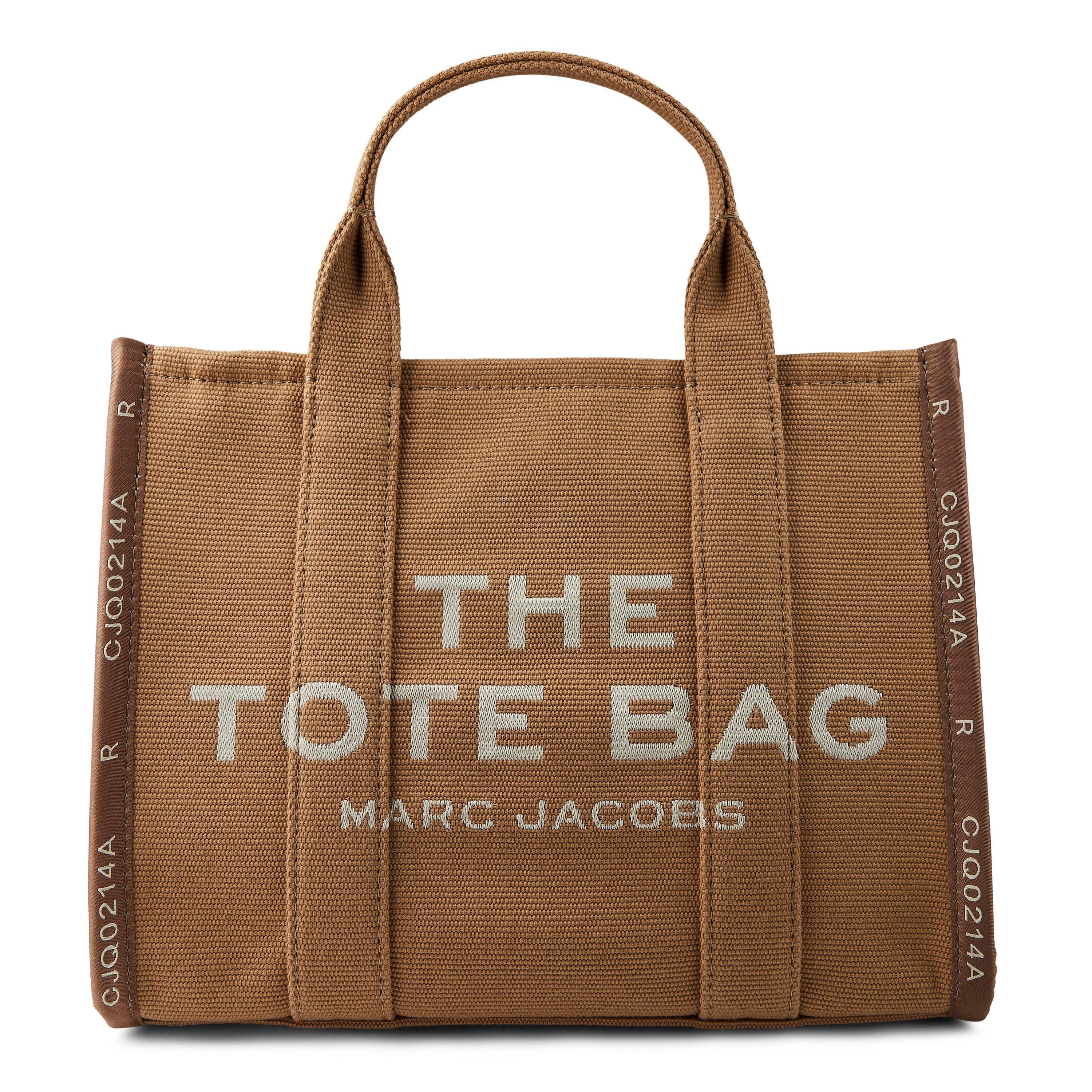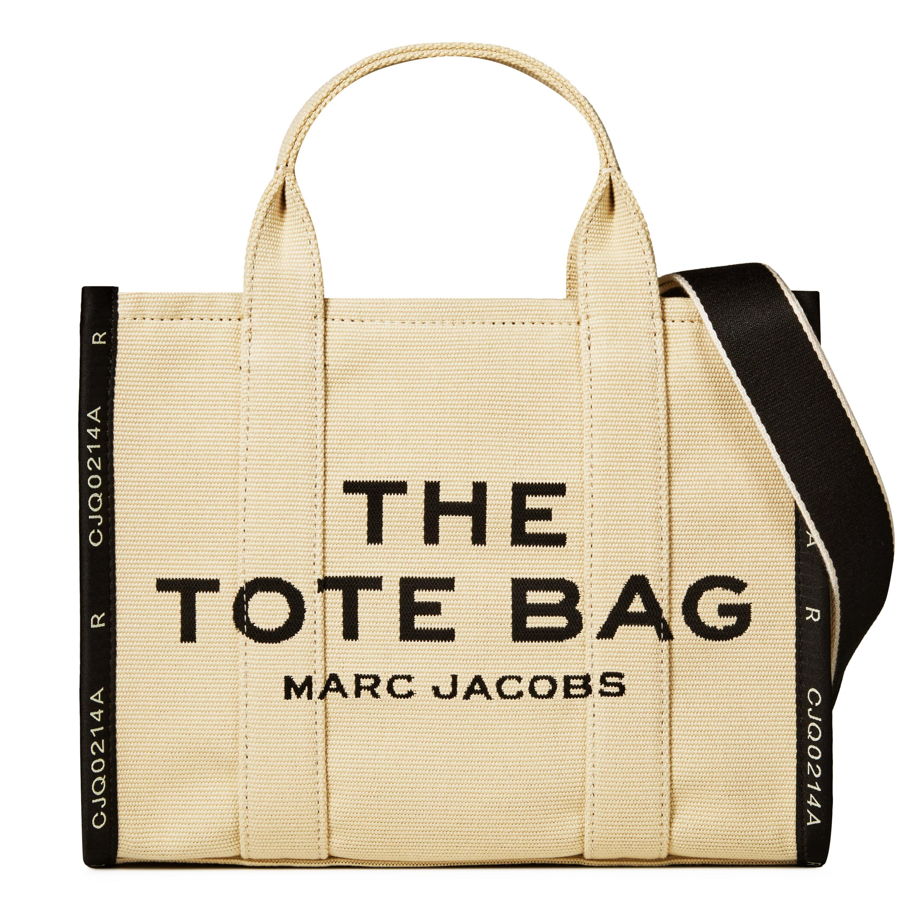 Update your day-to-day collection with the Medium Jacquard Tote Bag from Marc Jacobs. Made from a woven fabrication enriched with contrasting jacquard trims, this tote provides twin top handles and a removable adjustable webbed strap to wear in your hand or at the shoulder. With a zipped closure to the top, this bag is organised with two internal zip pockets and two internal slip pockets so your can easily carry your everyday essentials. Defining a minimalistic aesthetic, this tote bag is finished with its namesake branding embroidered to the front. Accompanied by a branded dustbag. Dimensions: W 13 x D 6 x H 11 inches.