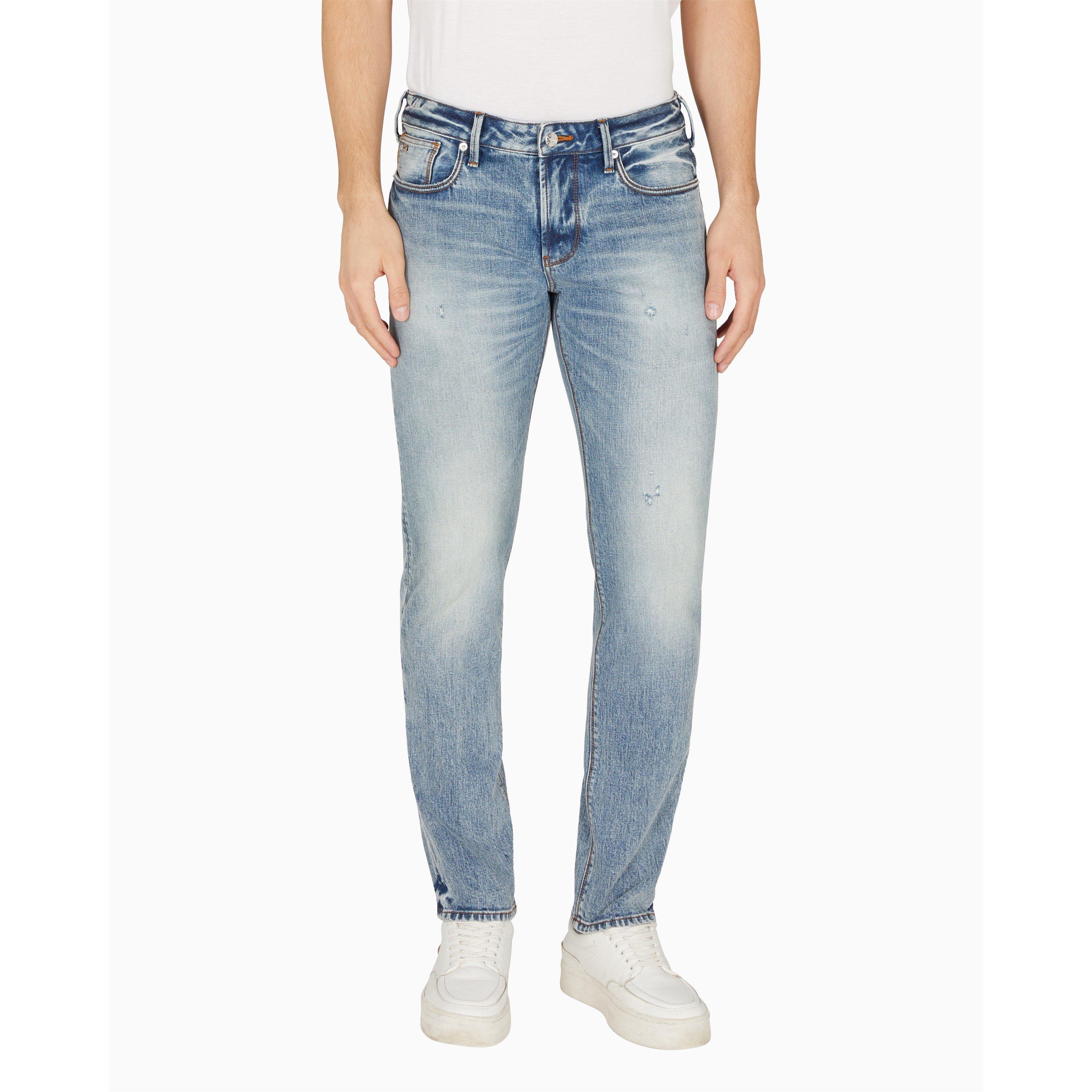 Premium denim meets Italian design in these J06 slim-fit jeans from Emporio Armani. The streamlined silhouette offers a modern cut that sits comfortably on the waist and maintains a sleek line through the leg. Signature branding appears on the leather back patch and iconic eagle motifs adorn the coin and back pockets, delivering understated luxury to this wardrobe essential.