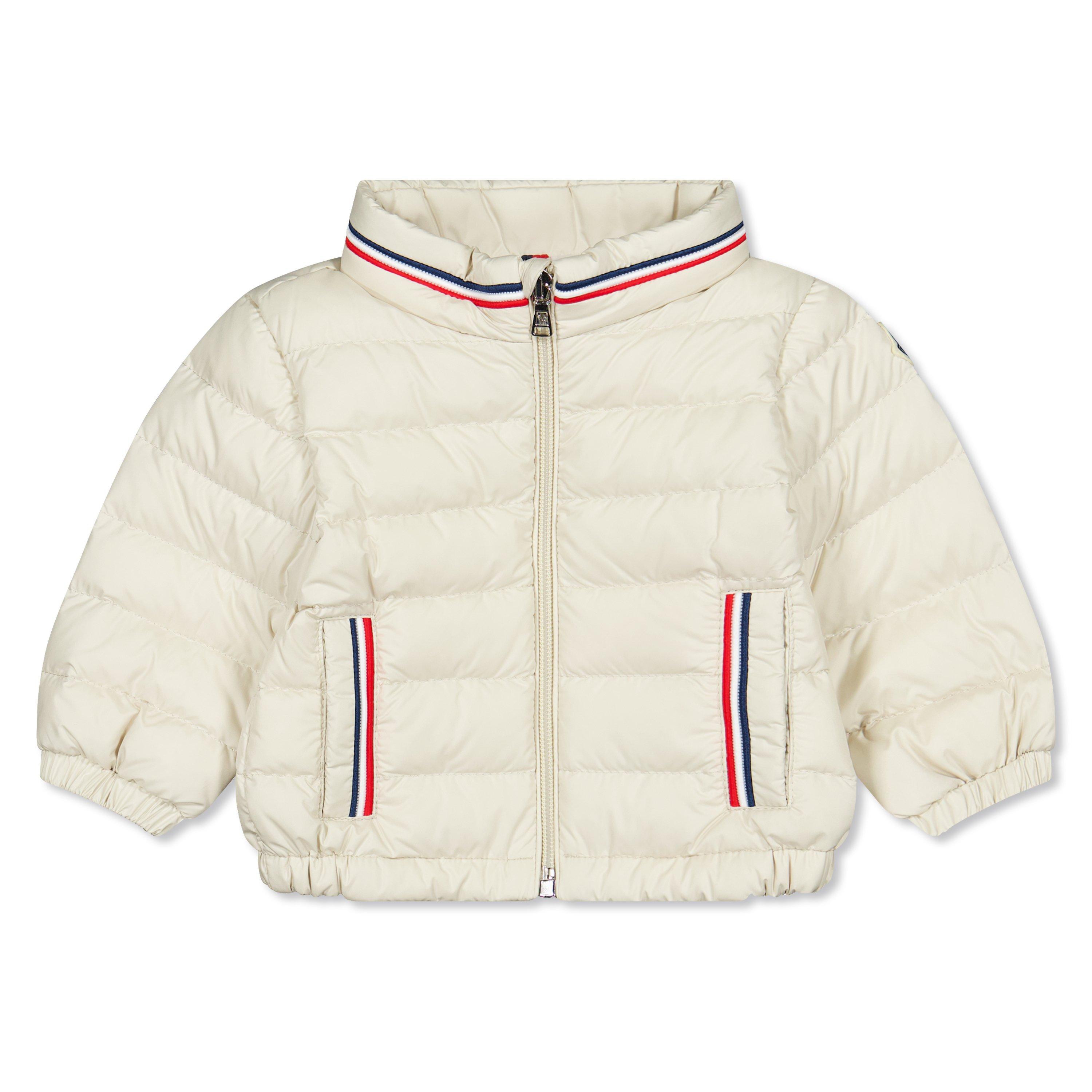 Moncler's Jerry Long Sleeve Short Puffer Jacket delivers warmth for boys. Constructed with traditional baffle stitching and padding, this hip-length children's coat features Moncler's tricolour on the collar and pocket trims for style during milder months and outdoor adventures.