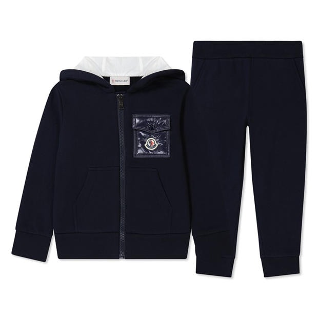Treat your little one to their first taste of luxury with this Logo Tracksuit Set, brought to you by Moncler. Beautifully crafted in sumptous cotton fleece, this set boasts a hoodie and jogging bottoms. The hoodie features a classic hooded neckline, full-length sleeves, a central zip-fastening, two hand pockets to the front, a contrasting flap patch pocket on the chest, ribbed trims, and discreet tone-on-tone stitching. The jogging bottoms sport an elasticated waistband, two slash pockets, and ribbed trims. Solid block colouring creates a sleek silhouette, and the brand's signature felt patch to the chest and joggers ensures instant brand recognition with a high-end flourish. Machine wash at 30 degrees.