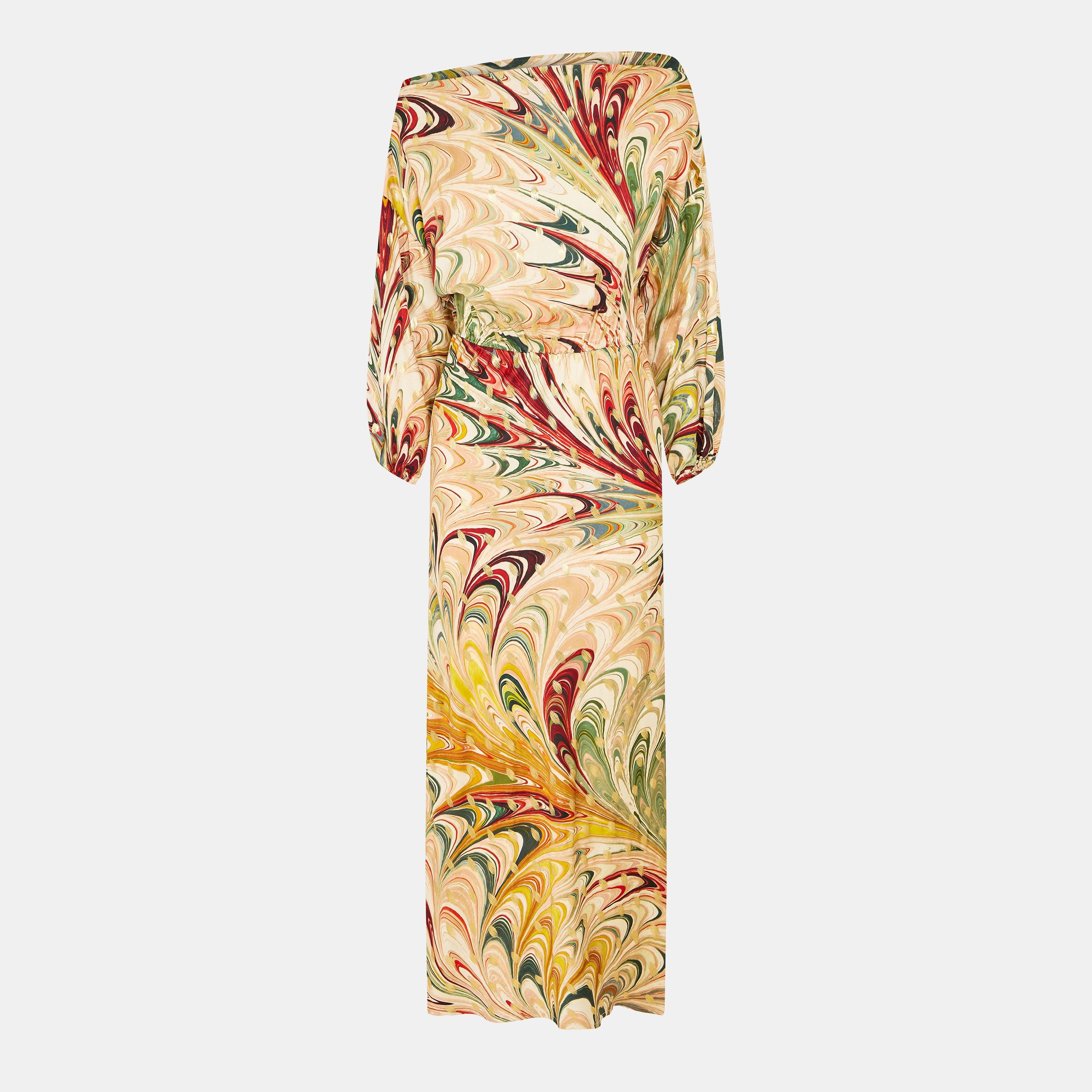 The Never Fully Dressed Multi Marble Tilly Dress is the ultimate statement piece for bold evenings or chic day-to-night looks. Featuring a satin-esque fabric that elegantly skims your curves, this ankle-length dress combines comfort and sophistication. Fully lined with sheer sleeves, it adds just the right touch of allure to your wardrobe.