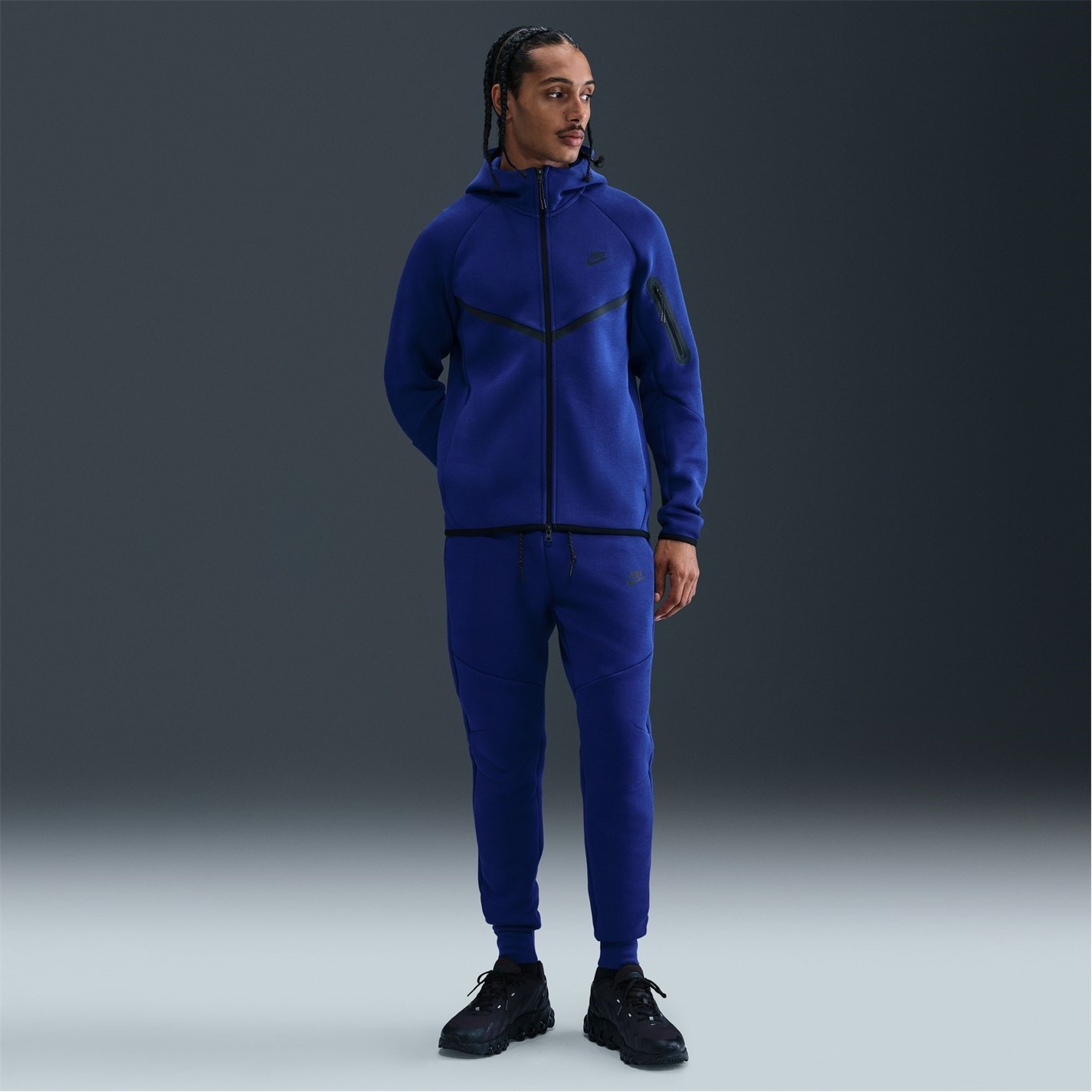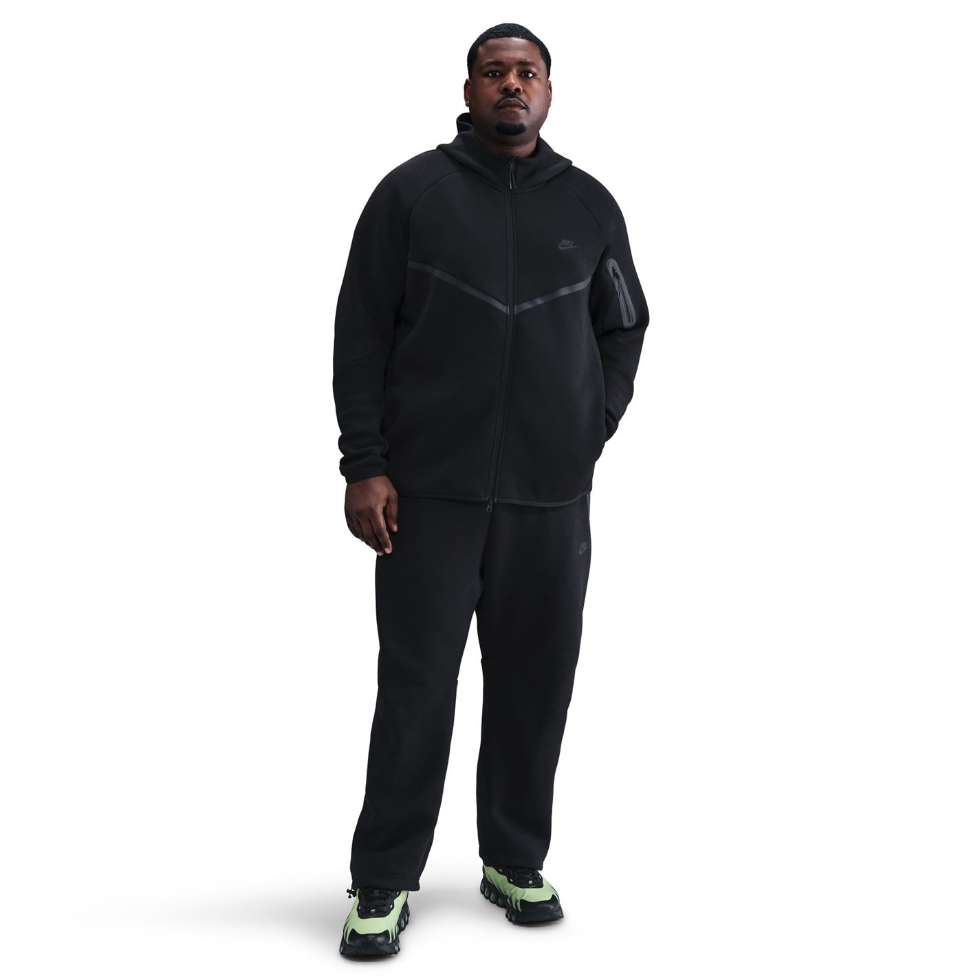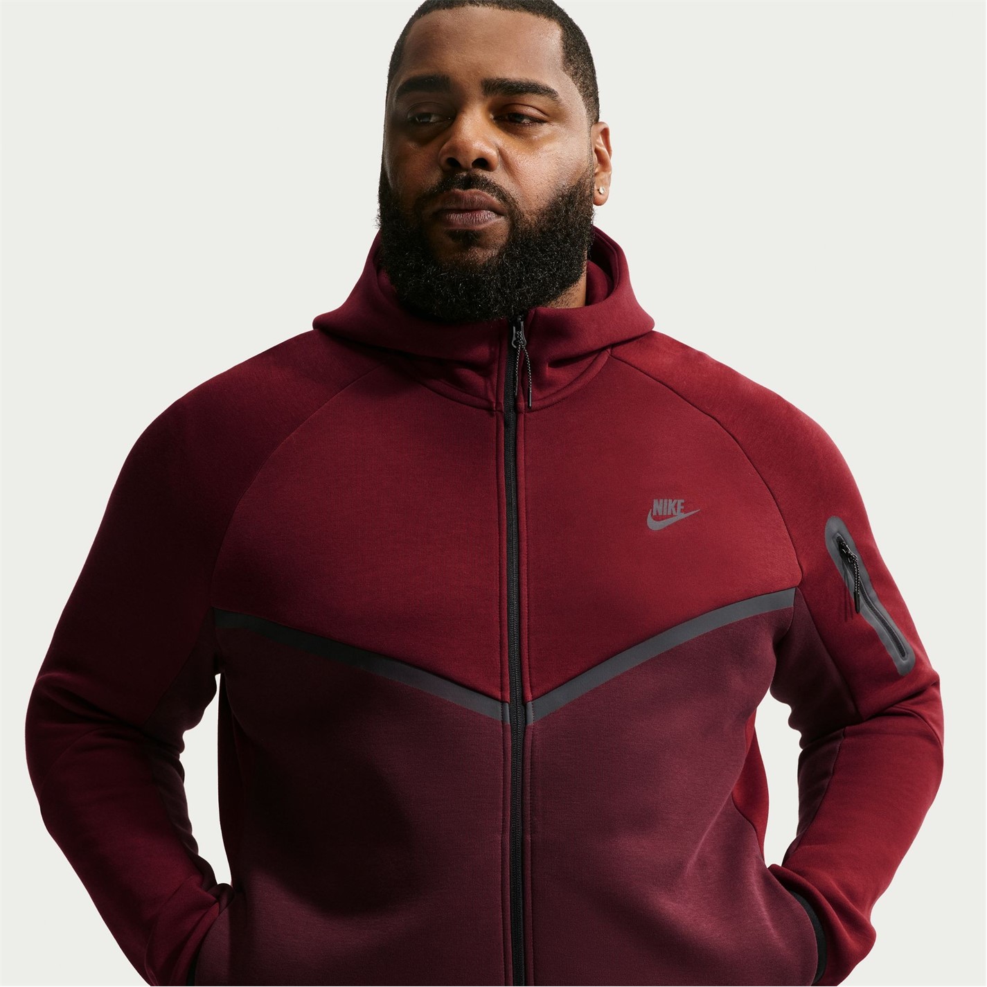 This Nike Tech Fleece is crafted with full zip fastening and long sleeves for a secure fit. It features a hooded neckline plus two hand pockets for a classic look and are a lightweight construction. This fleece is a solid colouring throughout designed with a signature logo and is complete with Nike Swoosh branding.