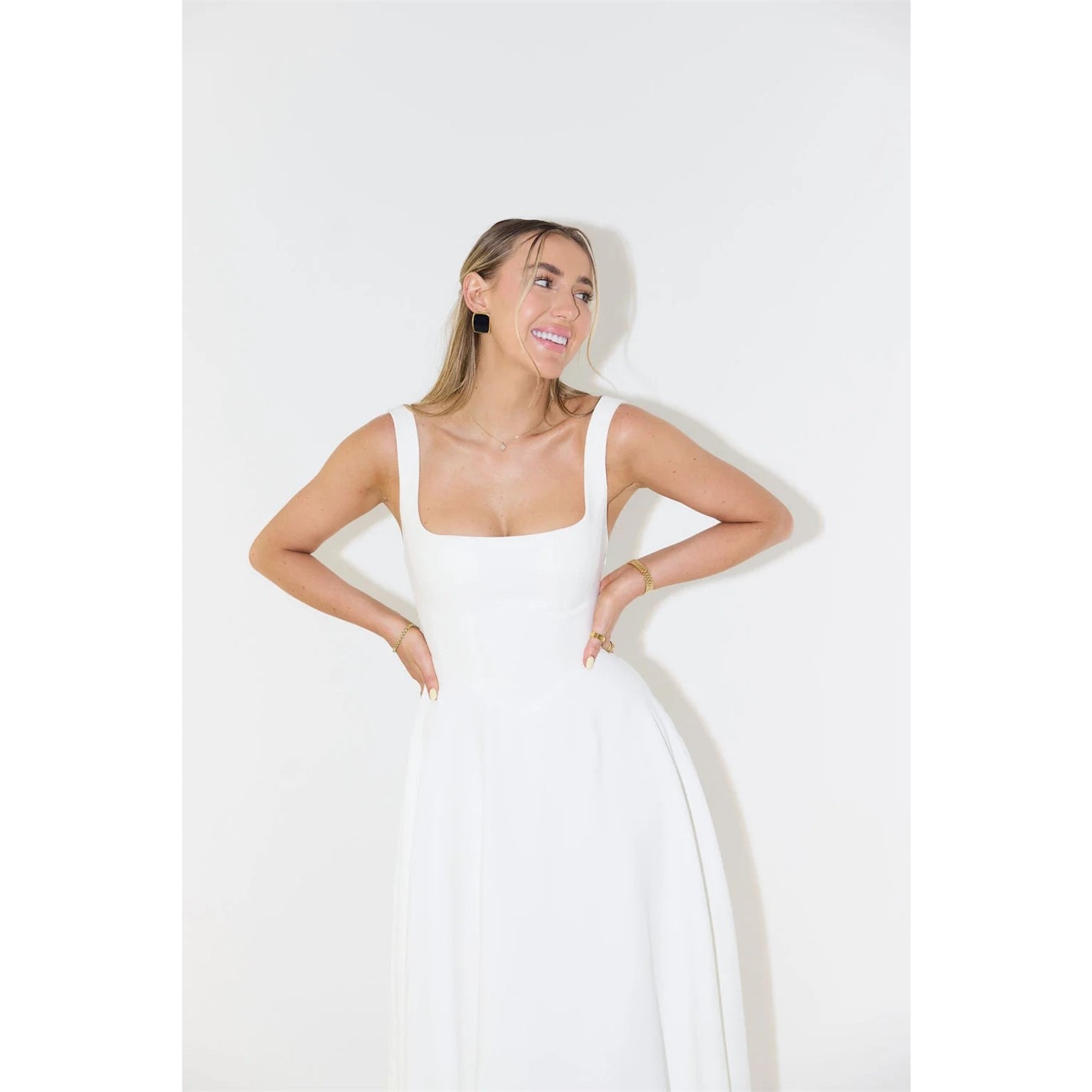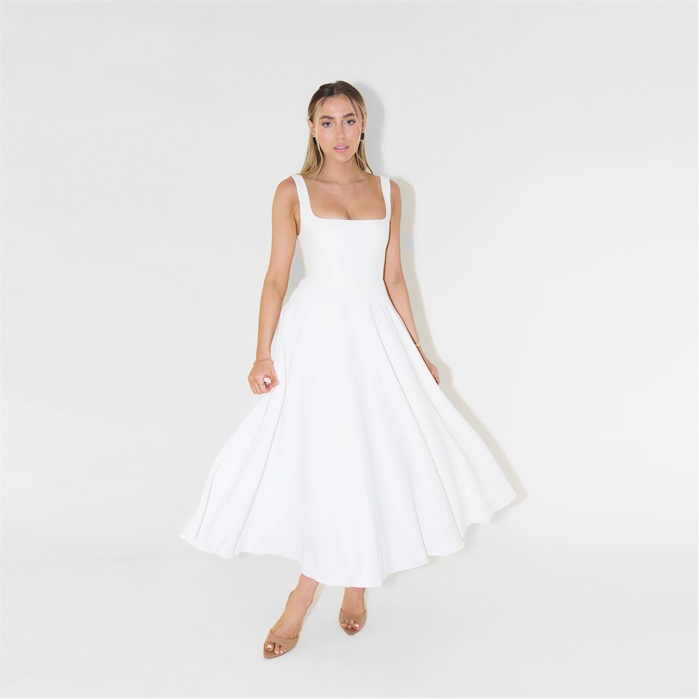 Sculpted to perfection, Odd Muse - The Ultimate Muse High Waist Square Neck Midi Dress dress offers a balance of modern femininity and tailored sophistication. The crisp lines and premium feel make it a standout piece, effortlessly transitioning from daytime engagements to evening affairs with style and grace.