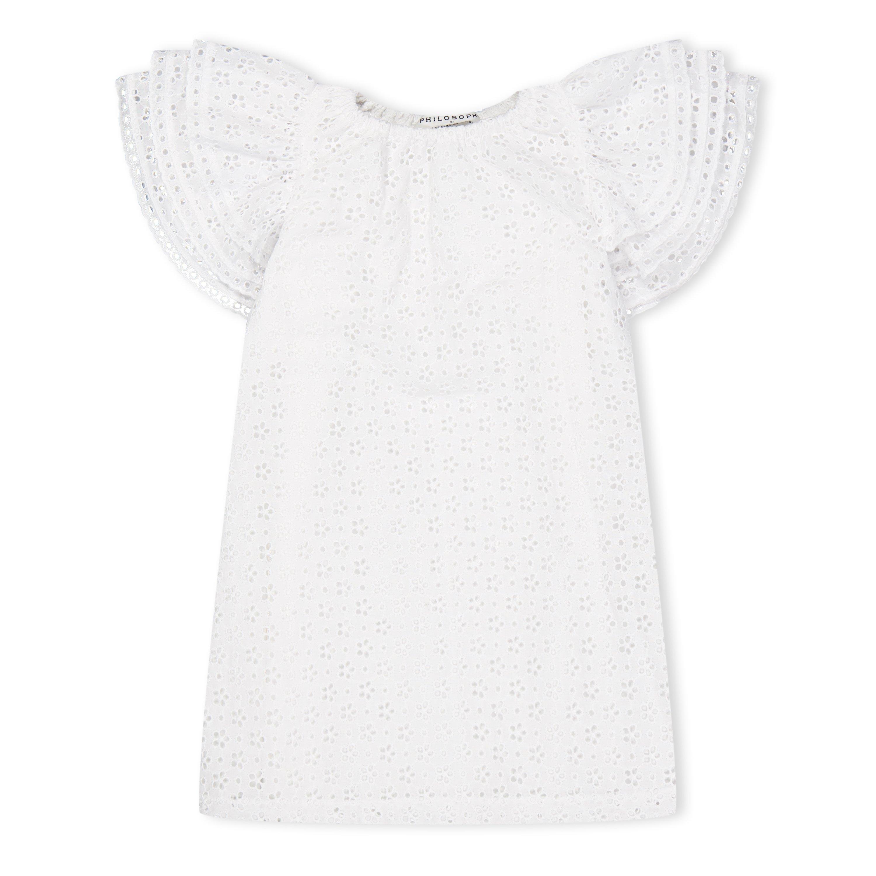 Philosophy di Lorenzo Serafini's Kids' Ruffled Lace Shift Dress showcases fine work with delicate details. The dress features lace and ruffles in a classic shift design, ideal for special occasions.