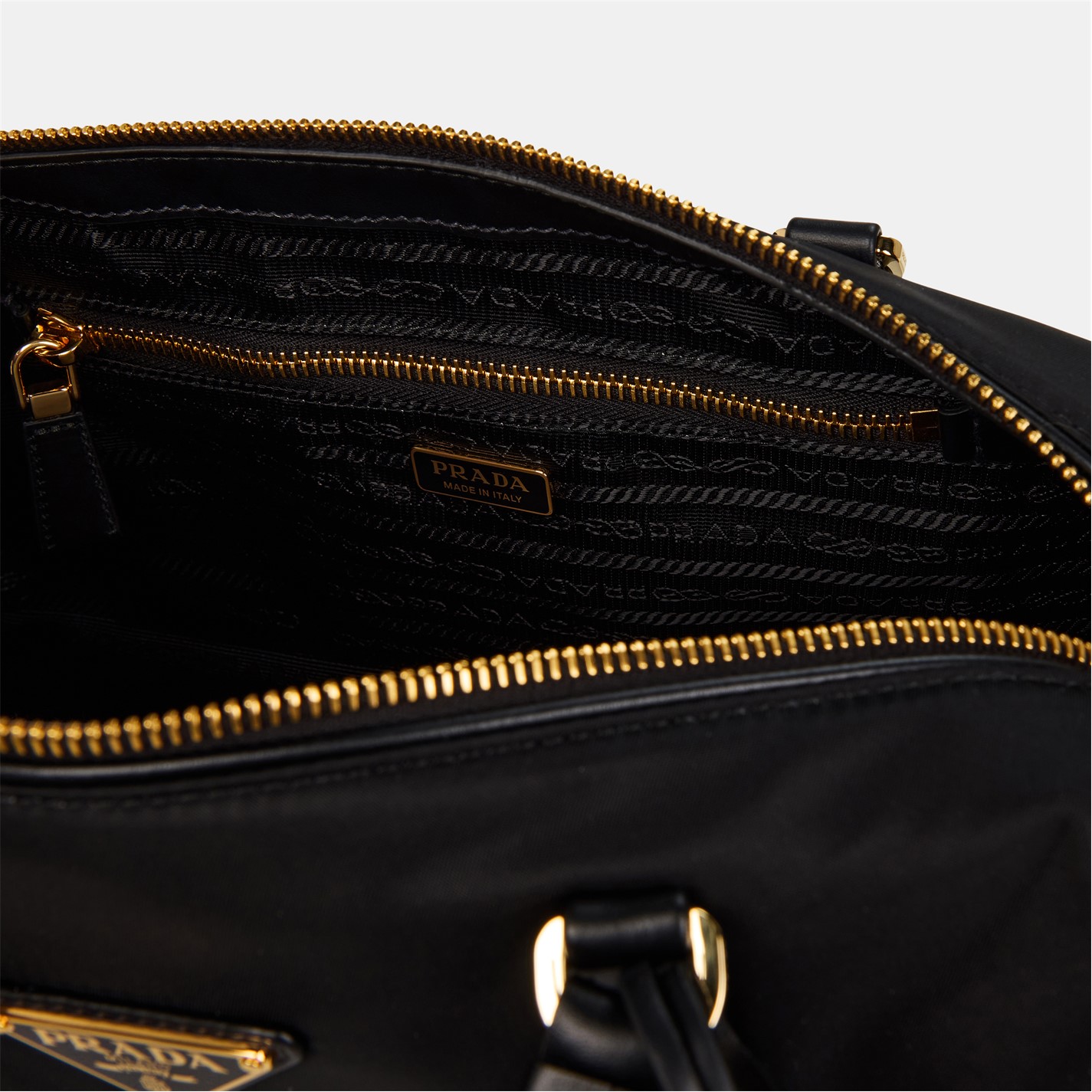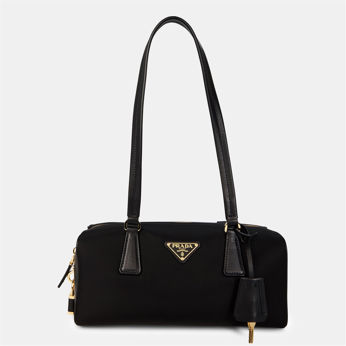 - Prada's signature enamelled triangle logo on the front ensures immediate designer appreciation.