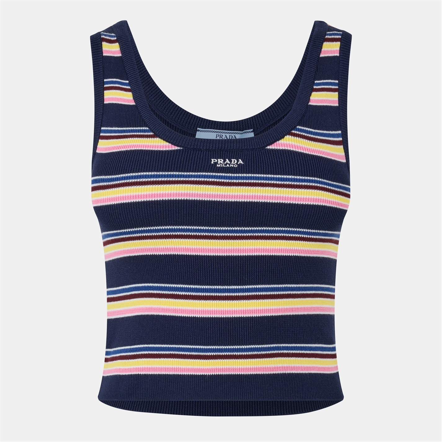 Prada's Striped Tank Vest delivers contemporary appeal to your wardrobe. This tank top showcases the brand's styling with precision cutting, creating a piece that adds a finishing touch to your casual summer outfits.