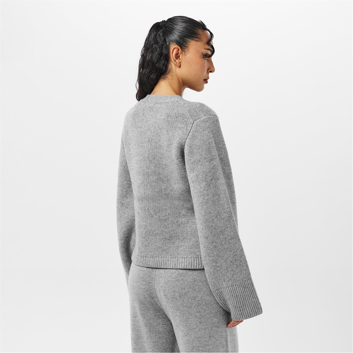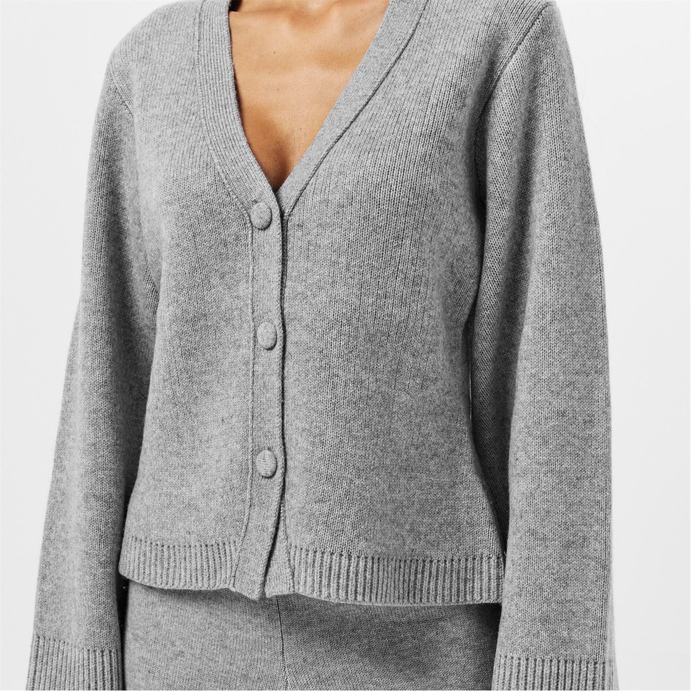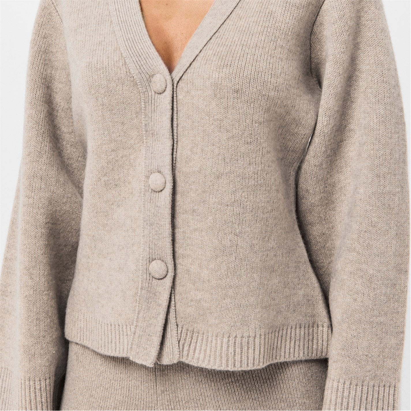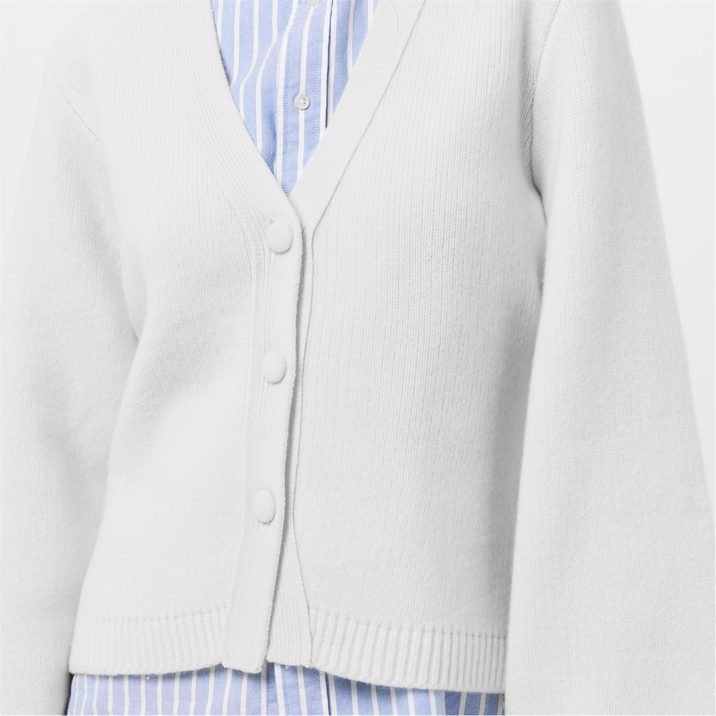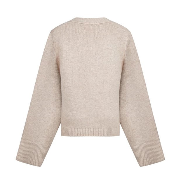 - Adding a refined touch, the ribbed trims to the hem and cuffs complement the cardigan.