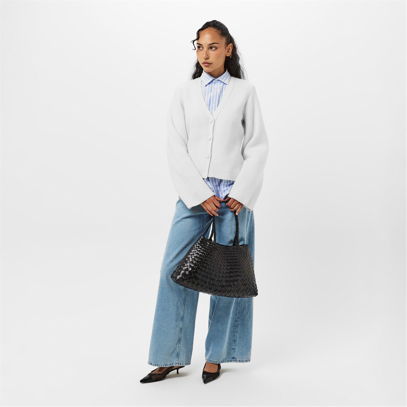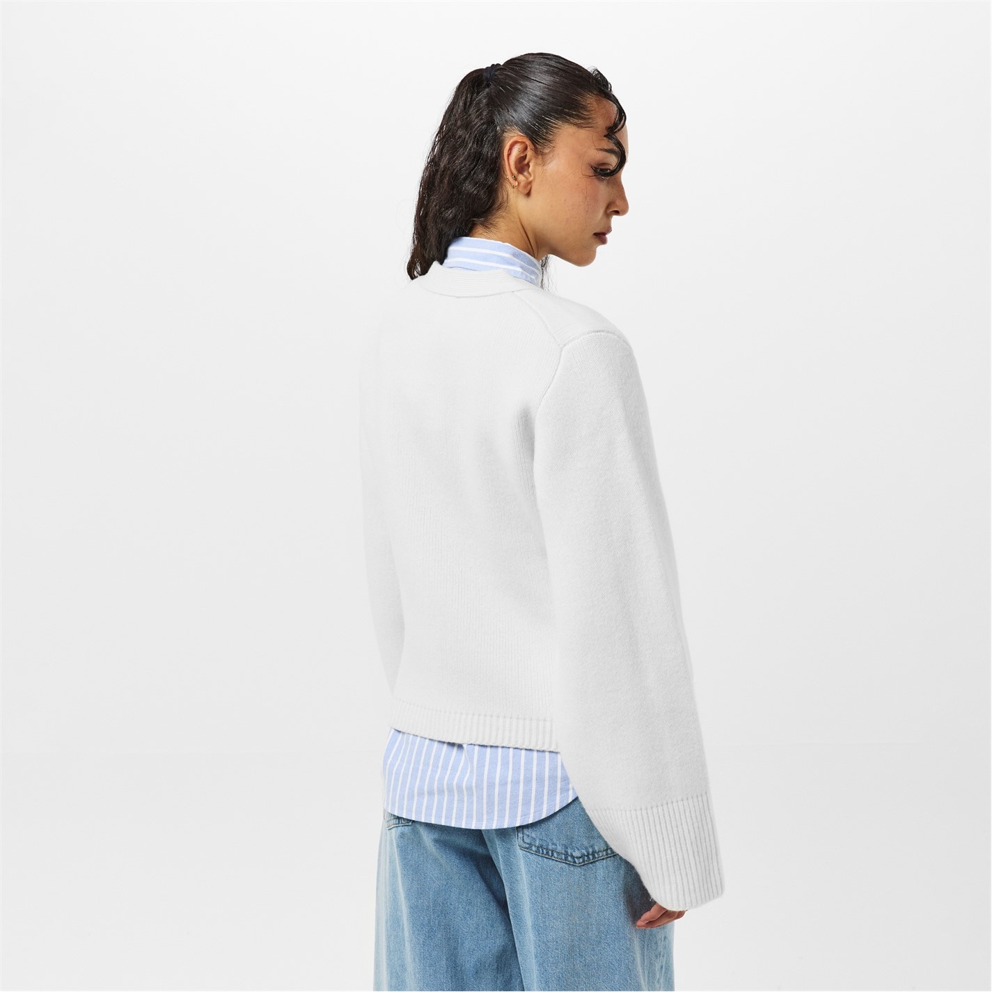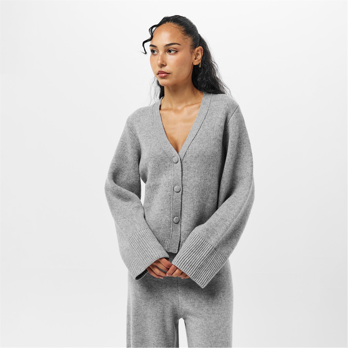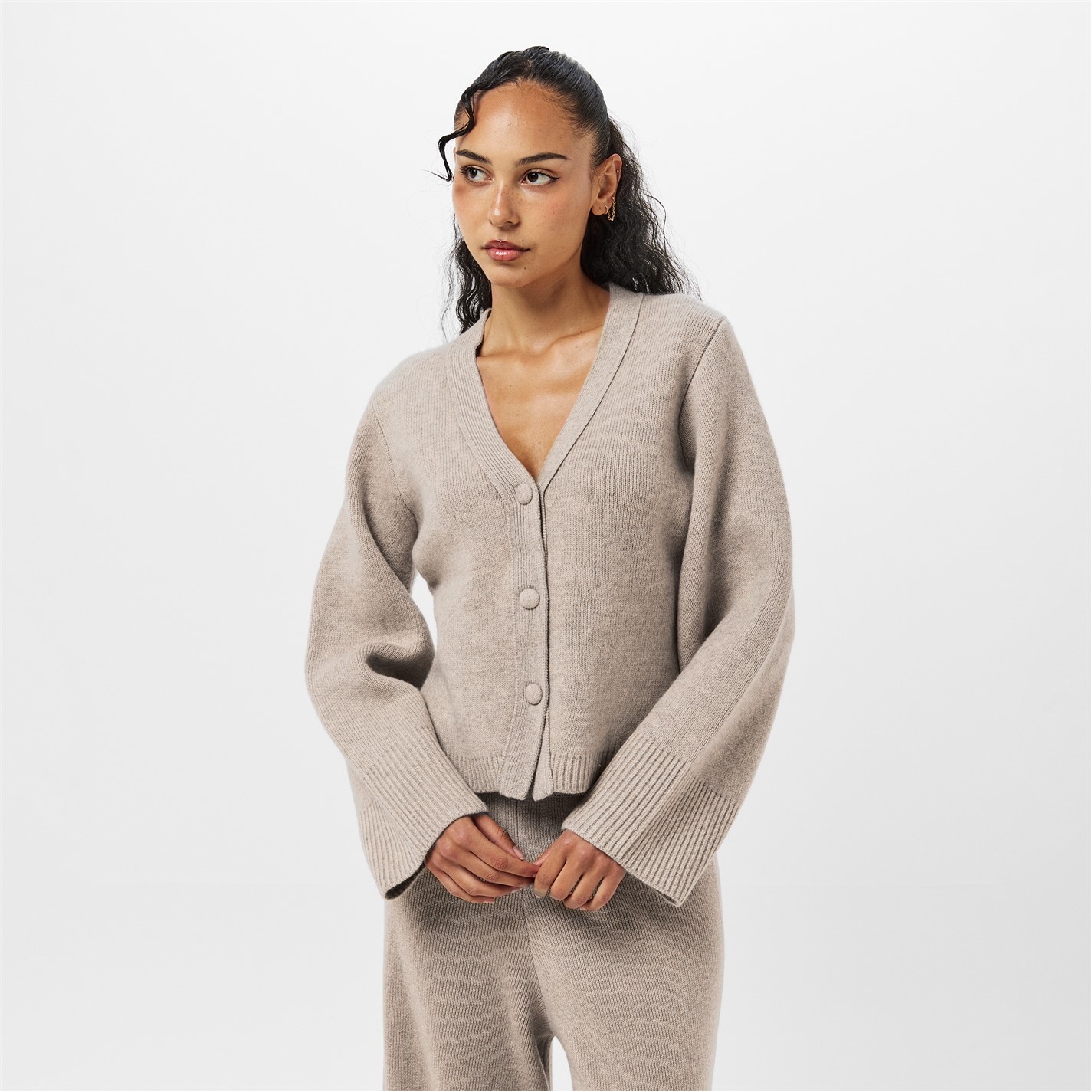 - Adding a refined touch, the ribbed trims to the hem and cuffs complement the cardigan.