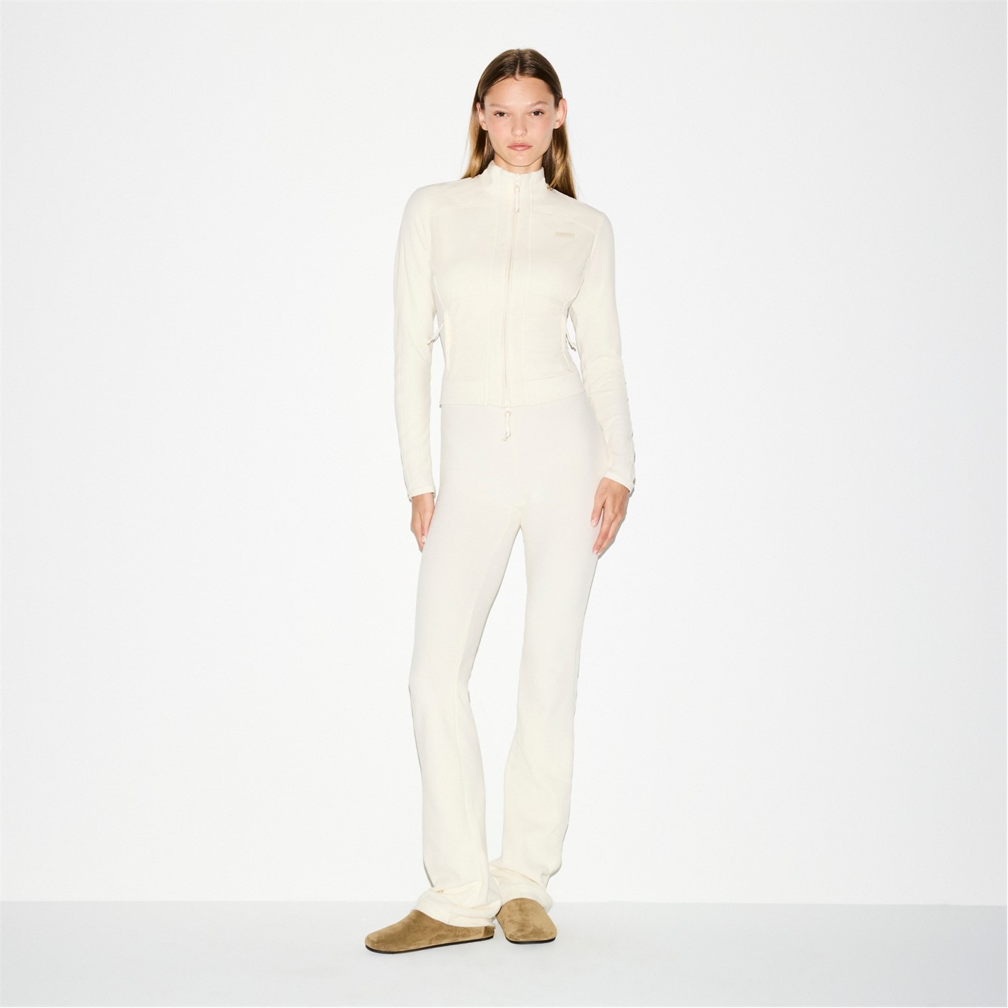 Part of the Outdoor Fleece collection, the SKIMS Fitted Jacket features a cropped profile in mid-weight polar fleece with sleek contrast detailing, bringing both softness and a sporty edge to your cold-weather wardrobe. Finished with a mock neck, chest logo, and a shrunken zip-up silhouette, it fits true to size.