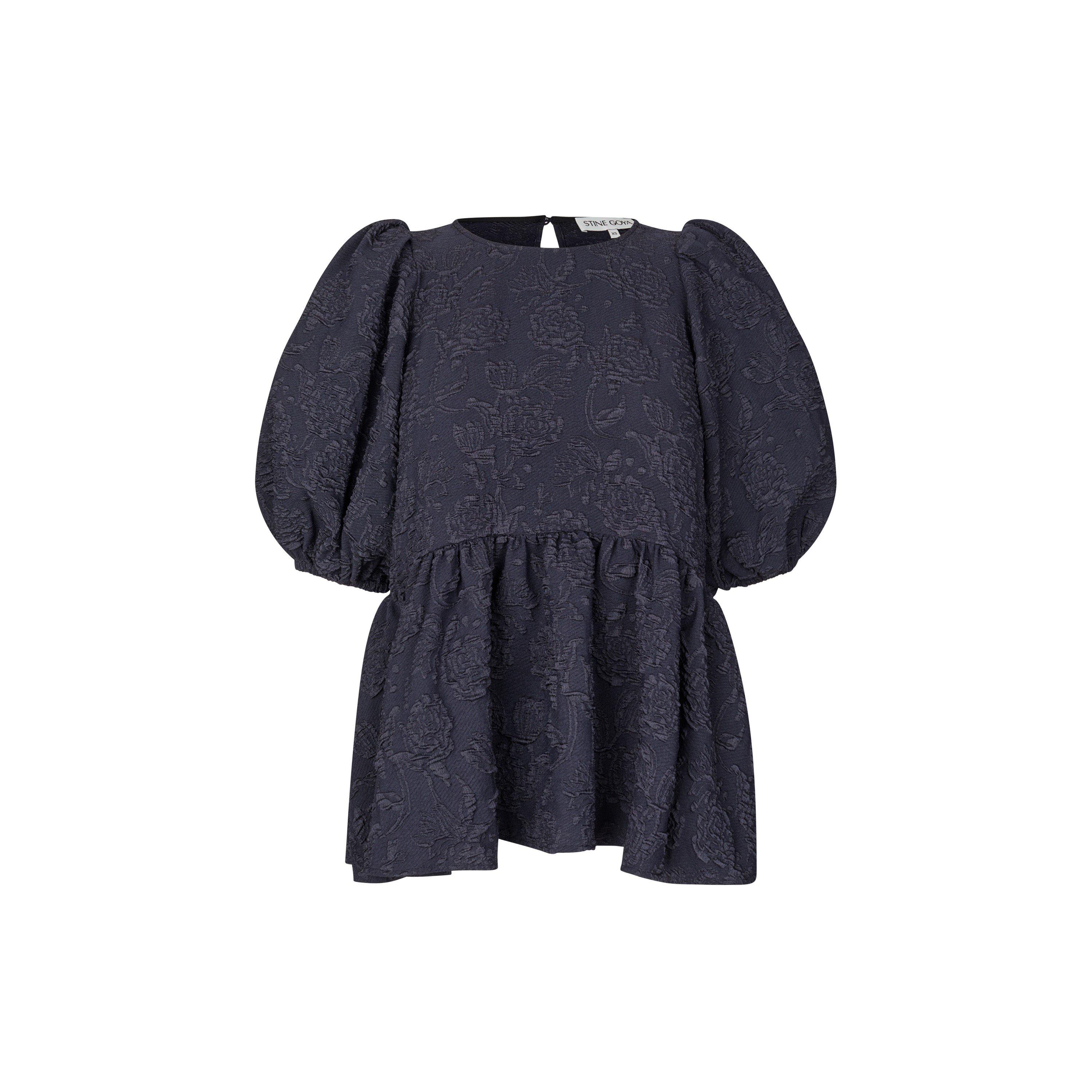 The Stine Goya Puff Sleeve Peplum Top is cut with gathered volume at the shoulders and a flared shape. Curved seam profiling creates a tailored look.