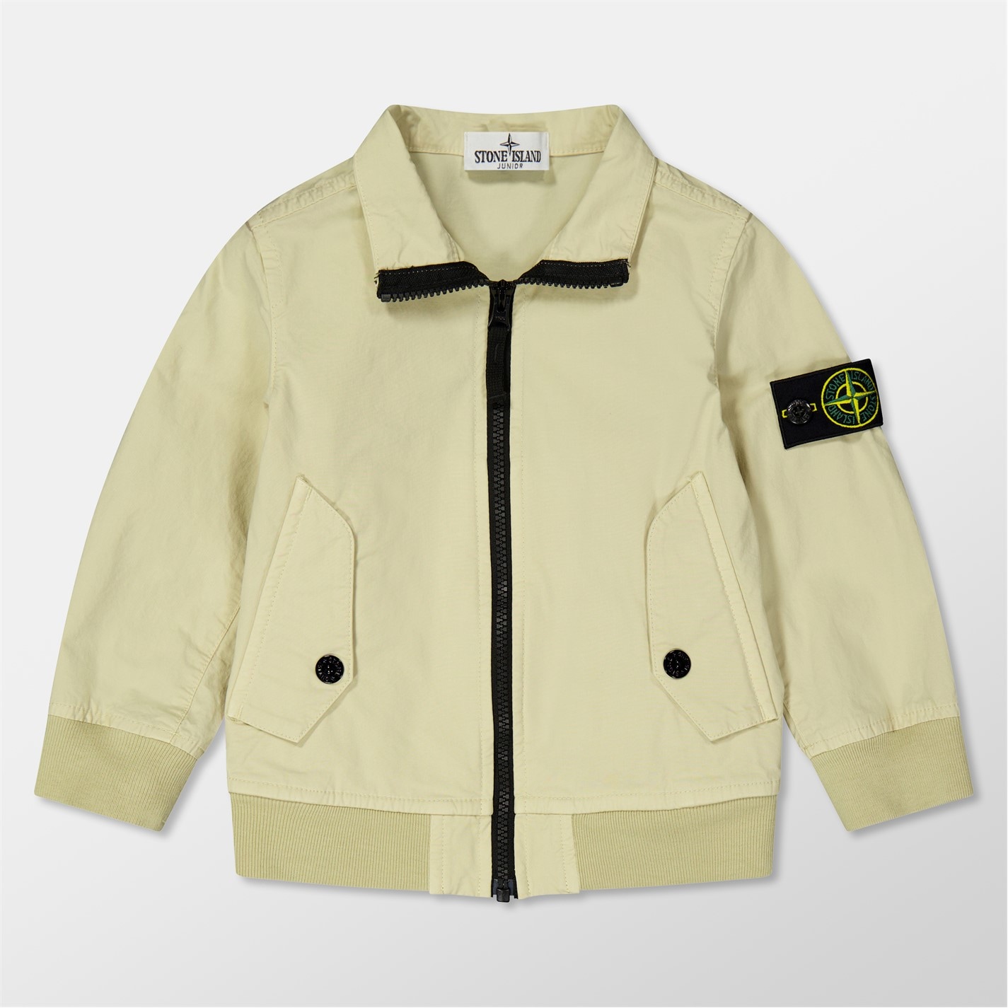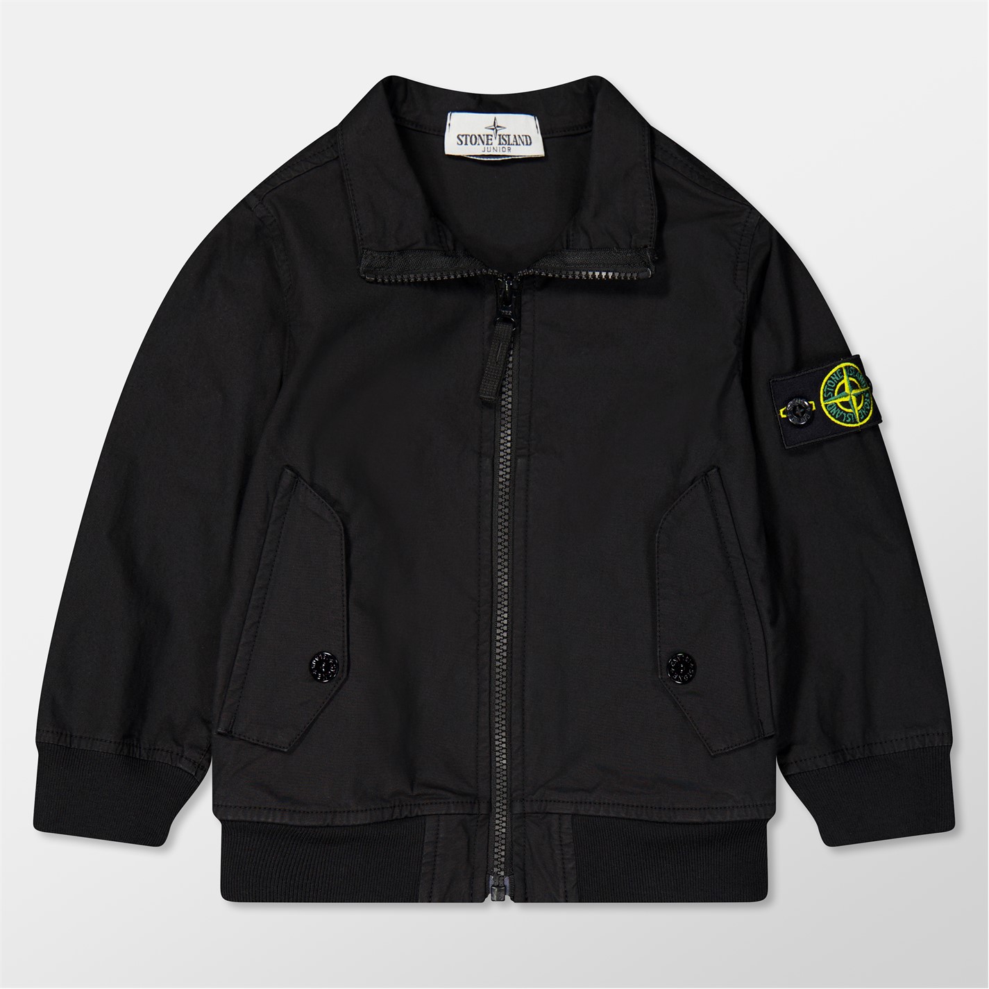 Stone Island's Cotton Long Sleeve Bomber Jacket delivers military-inspired style for the younger generation. Featuring the compass logo badge on the sleeve, this regular-fit design has practical snap-button pockets with a full zip fastening for a cool style.