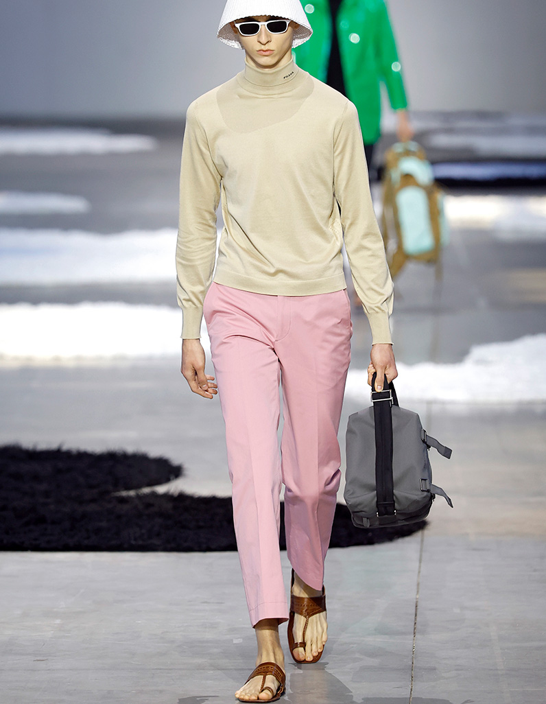 Meanwhile at Dolce&Gabbana, suits came in those same collegiate stripes you’d associate with the pages of every fashion guy’s favourite book Take Ivy, an exploration of prep through photographs shot on the campuses of America's elite. Elsewhere in Italy, Fendi served a collection imbued with prepster aesthetics: collegiate-striped ties in mint and forest green were worn tight over shirts and juxtaposed playing field football knits. At Ami Paris, preppy lace-up Derbies were paired with schoolboy-vibing shorts, shirts and neckerchiefs, and, elsewhere, V-neck sweaters were worn over T-shirts.