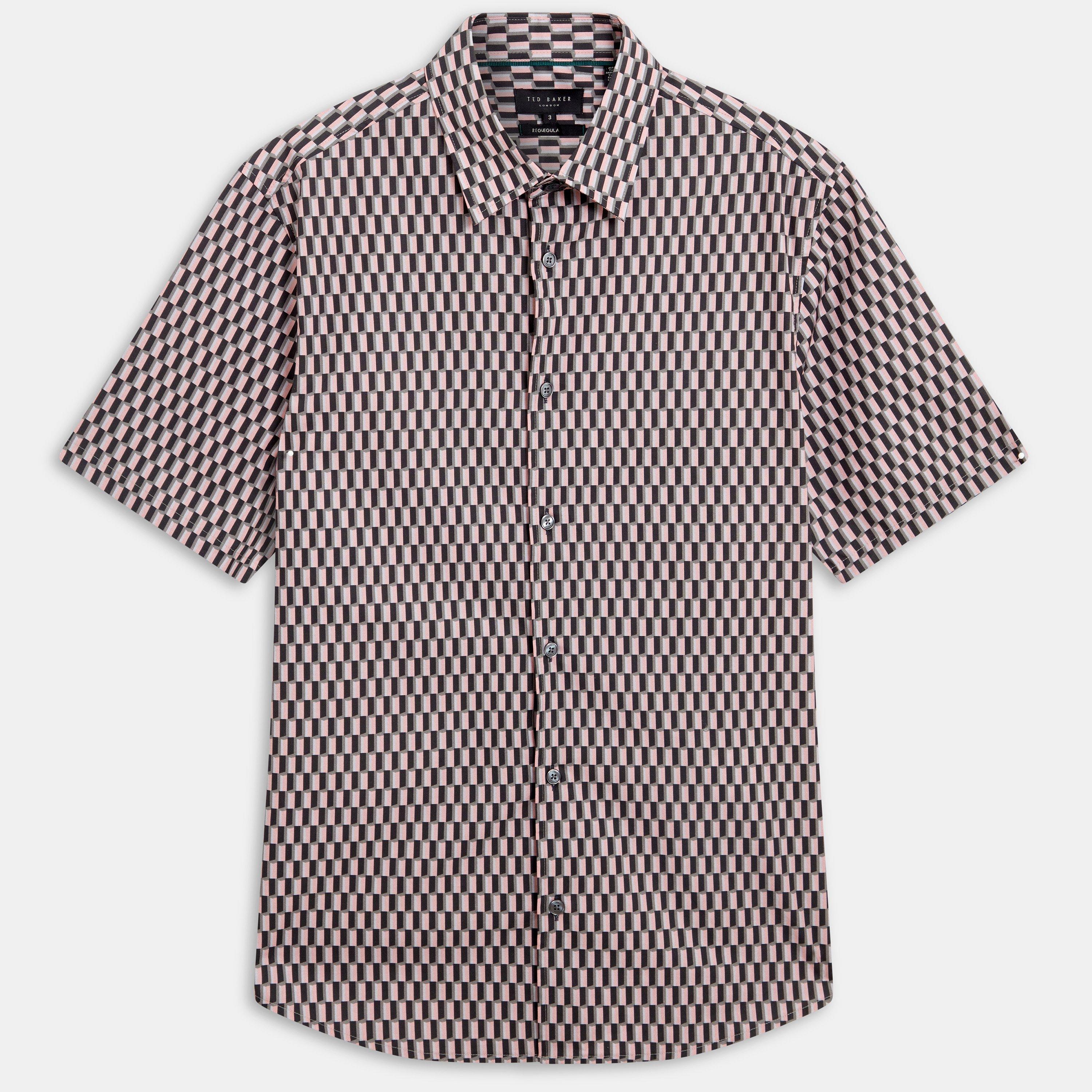Short sleeve shirt Regular fit Geometric print Pure cotton fabric Classic collar Button fastening
