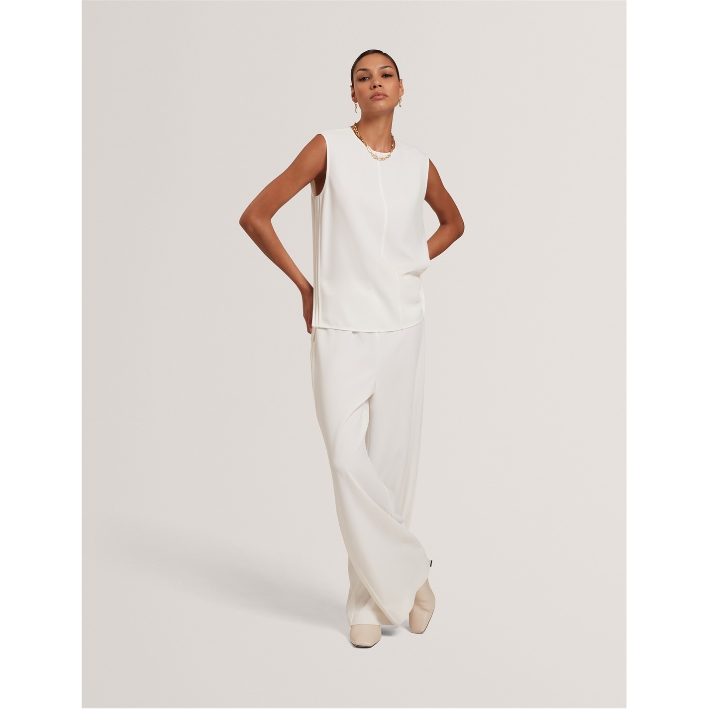 The Ted Baker Wide Leg Trousers are built with a relaxed profile for everyday comfort. The design keeps a clean, modern finish throughout.