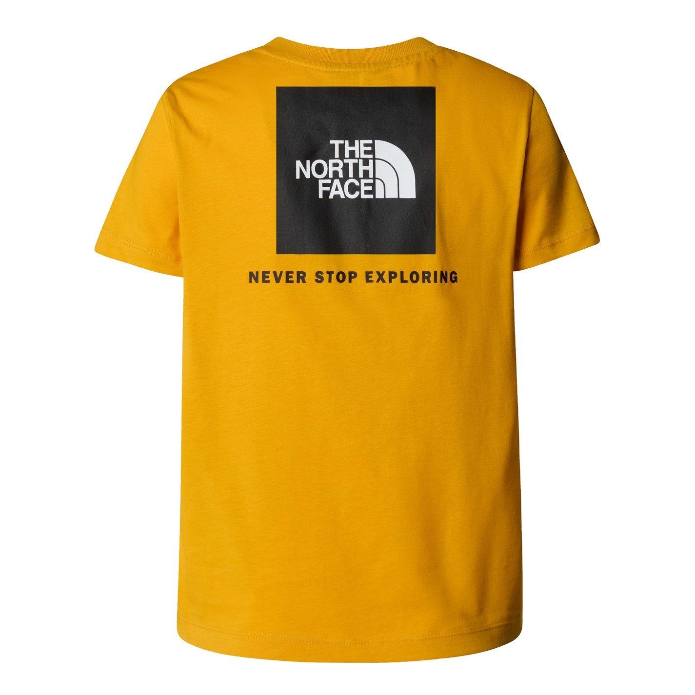 The North Face's Never Stop T-Shirt brings together comfort and heritage styling in a regular fit for active youth. This junior style showcases the well-known mountain motif with a durable build engineered for daily activity.